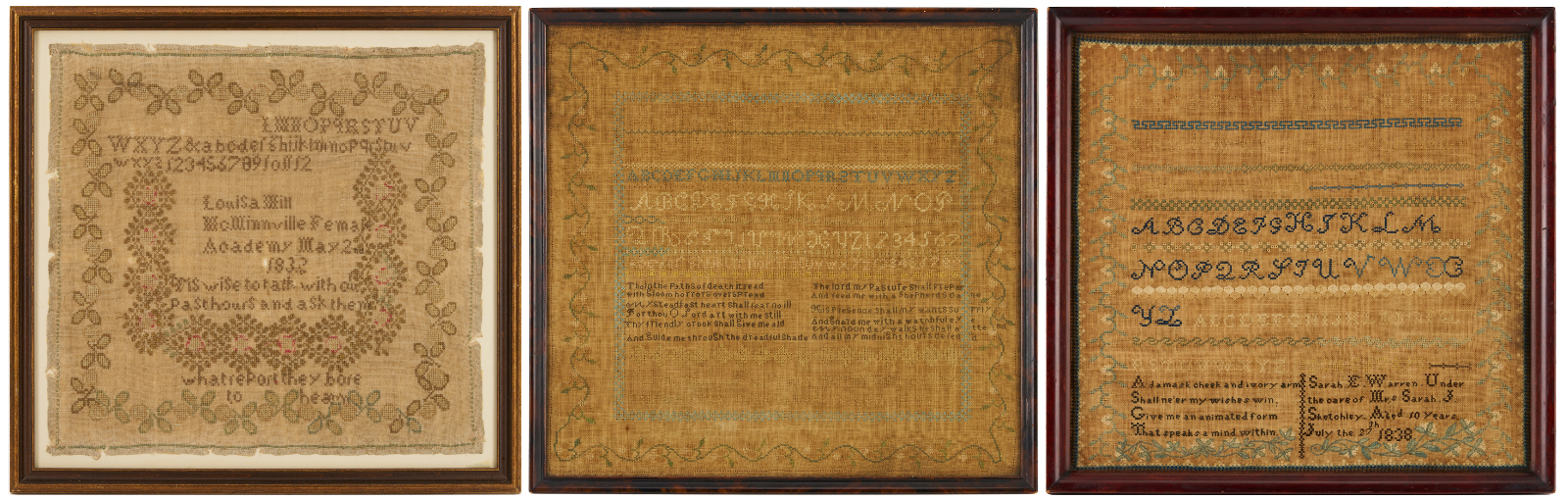 Join us Thurs. Jan. 29 at 10 AM EST for a Collector’s Coffee featuring a presentation from Jennifer Core, co-author of the new book, Tennessee Samplers: Female Education and Domestic Arts in Tennessee, 1800-1900. We’re excited to have samplers from all 3 Tennessee Grand Divisions in this auction (lots 235-237) and look forward to learning more from Jennifer. The Tennessee Samplers book will be available for sale and signing. This free, hour-long event will take place at our Knoxville Gallery (4310 Papermill Drive) and will be followed by a Guided Floor Preview of our Winter Auction.
