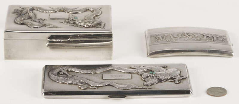 Lot 6: 3 Chinese Export Silver Dragon Boxes