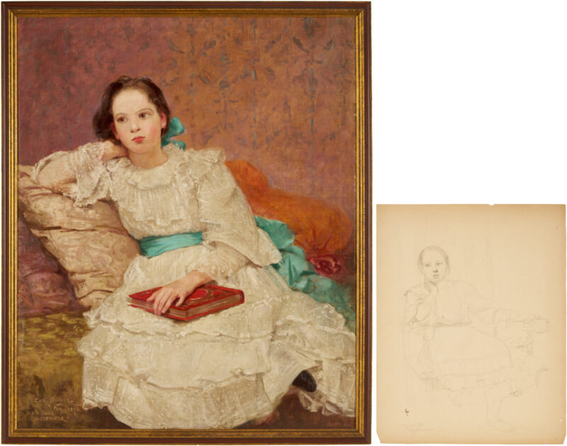 Lot 199: Carl Gutherz O/B Portrait of The Artist’s Daughter Plus Study