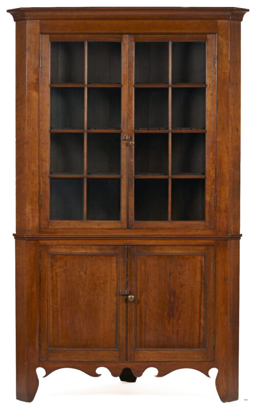 Lot 208: East Tennessee 2-Piece 16-Pane Corner Cupboard, c. 1820