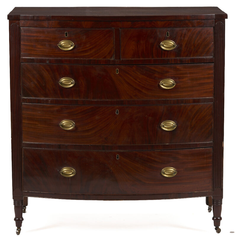 Lot 214: Southern Federal Bowfront Chest of Drawers, attr. Virginia