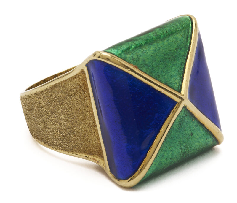Lot 315: 18K Yellow Gold & Enamel Ring