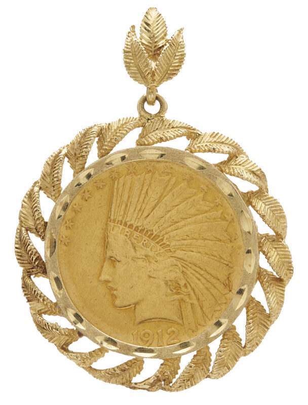 Lot 318: 1912 Indian Eagle $10 Gold Coin w/ 14K Bezel
