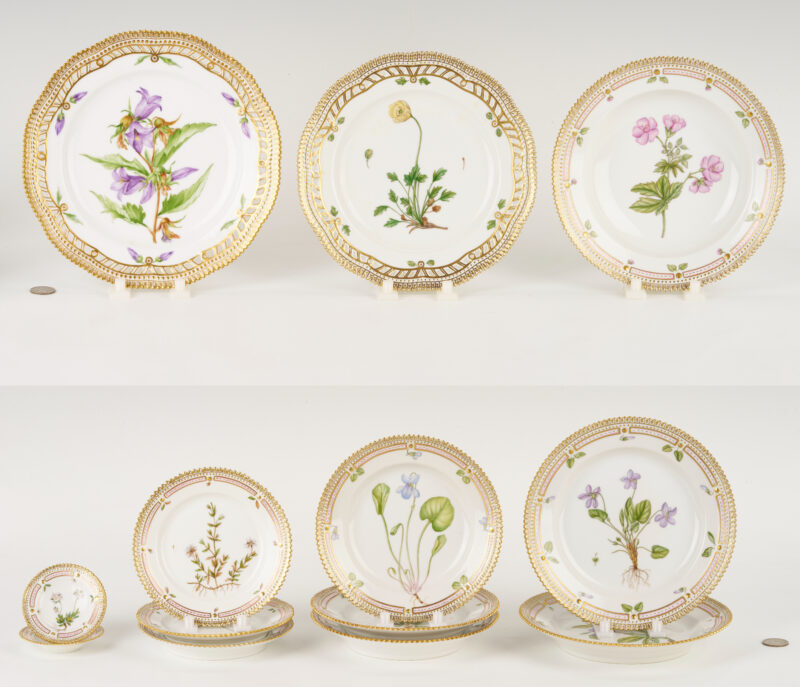 Lot 358: 13 Pieces of Royal Copenhagen Flora Danica Porcelain Dinnerware