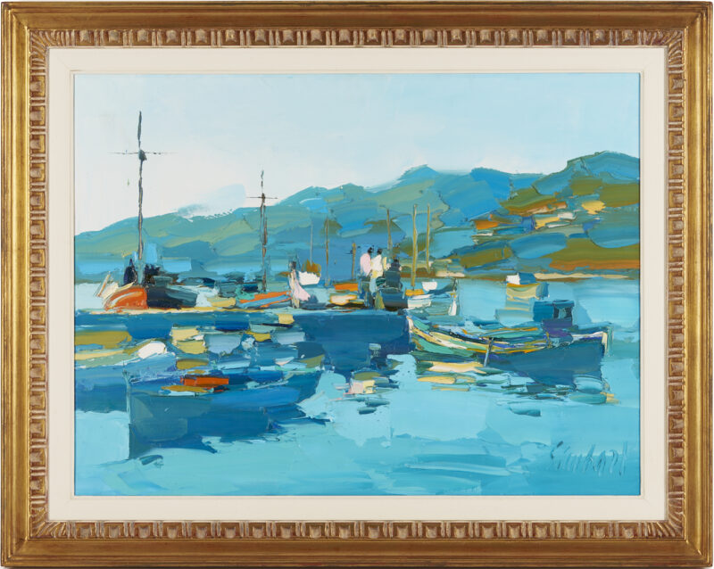 Lot 406: Nicola Simbari Oil Painting, Harbor Scene