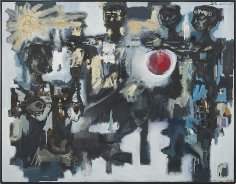 Lot 407: Large Dimitris Perdikitis O/C Painting, Greek Dancers, 1959