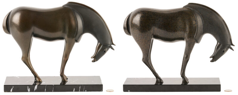 Lot 427: Pr. Loet Vanderveen Armored Horse Bronze Sculptures