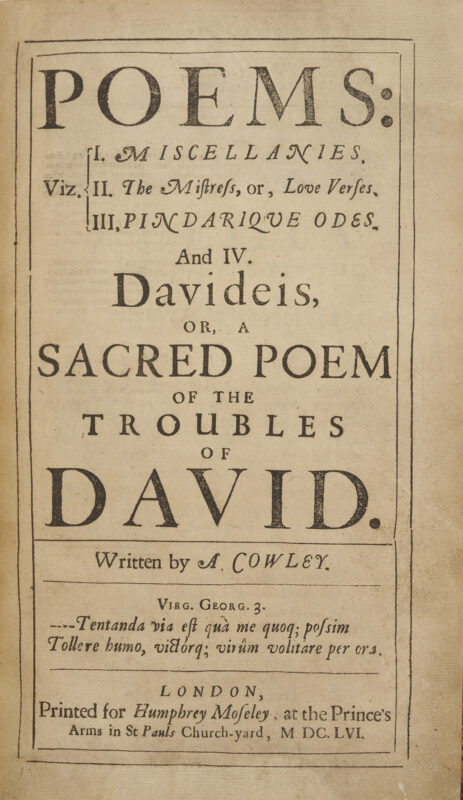 Lot 554: Poems by Abraham Cowley, 1656 First Collected Edition