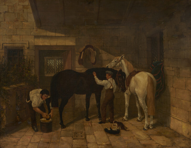 Lot 628: After John Frederick Herring Jr. O/C Painting, Horse Stable