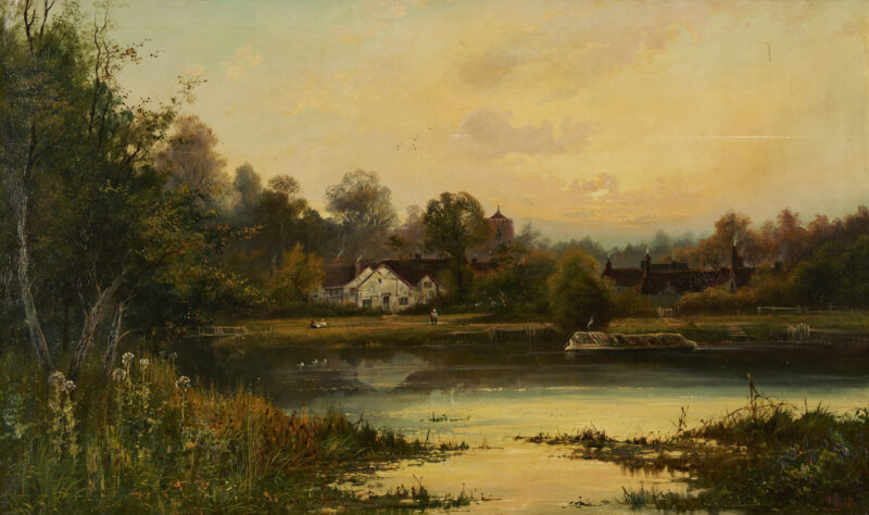 Lot 770: Large W. George English Landscape Oil, Near Maidenhead on Thames