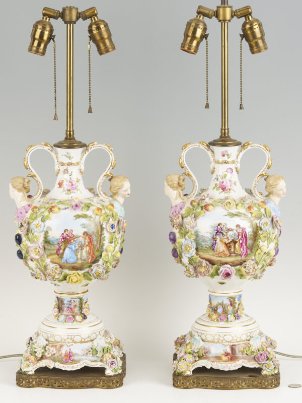 Lot 791: Pair of German Dresden-Style Potpourri Urn Lamps