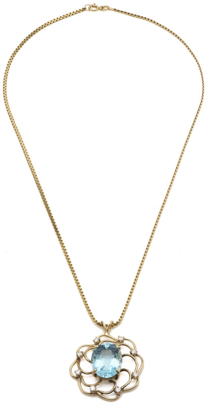 Lot 799: Aquamarine & Diamond Gold Pendant
