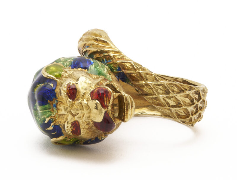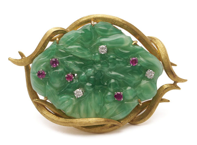 Lot 802: 18K Gold, Jade, Ruby, & Diamond Brooch