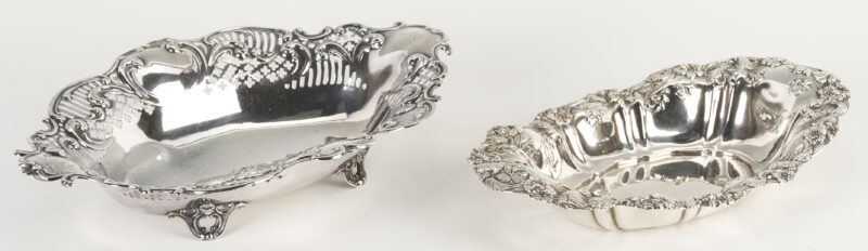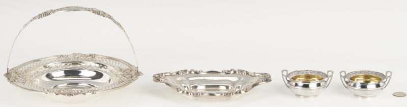Lot 853: Antique Sterling Basket plus 2 Wood and Hughes Salts and Candy Bowl