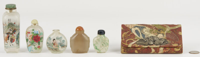 Lot 895: Chinese Molded Dragon Vase and 3 Snuff Bottles
