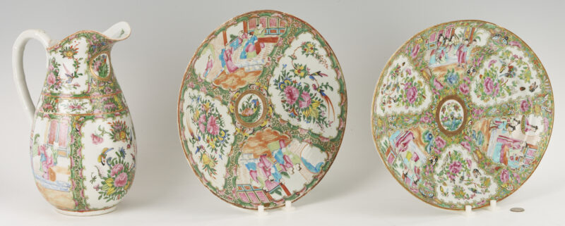 Lot 891: 3 Chinese Export Rose Medallion Pieces, Pitcher & Platters