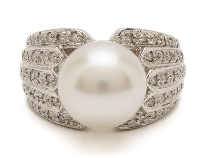 Lot 952: 18K Gold, Pearl & Diamond Ring