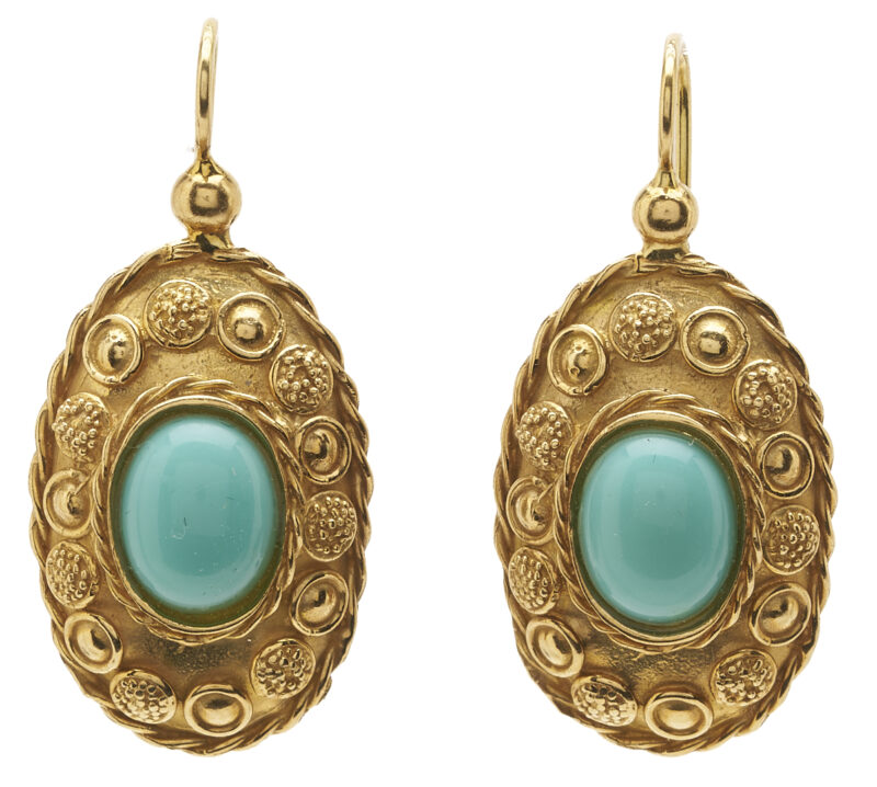 Lot 970: 18K Gold & Turquoise Earrings