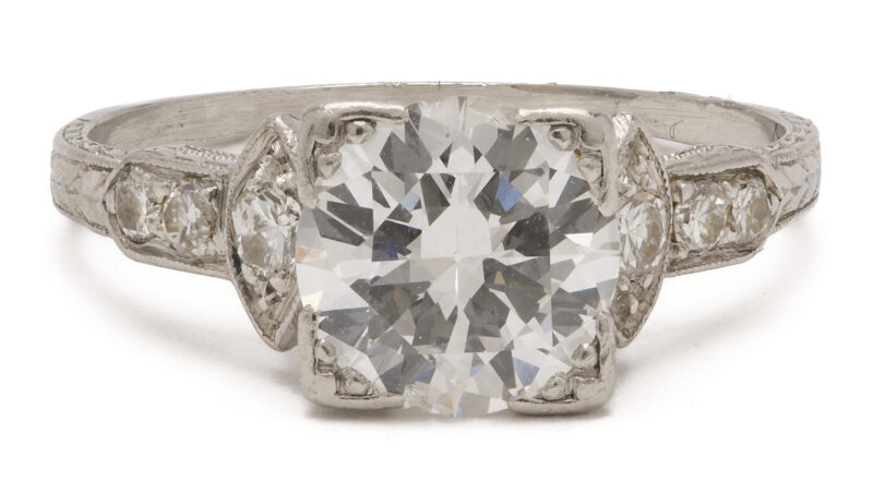 Lot 974: 1.39 Carat Platinum Diamond Art Deco Engagement Ring