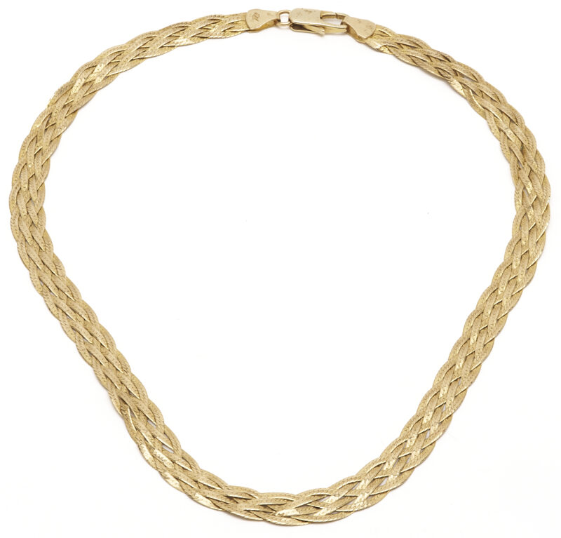 Lot 979: 14K Gold Flat Braid Chain Necklace
