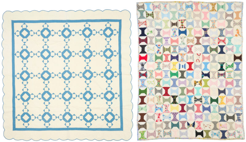 Lot 1060: Two American Pieced Quilts, Rolling Stone & Spools Patterns