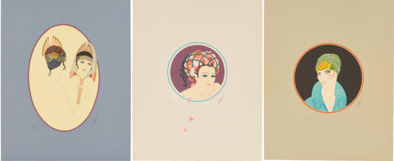 Lot 1200: 3 Signed Erte Lithographs, The Turban Suite Incl. The Mirror, Rose Turban, & Yellow Turban