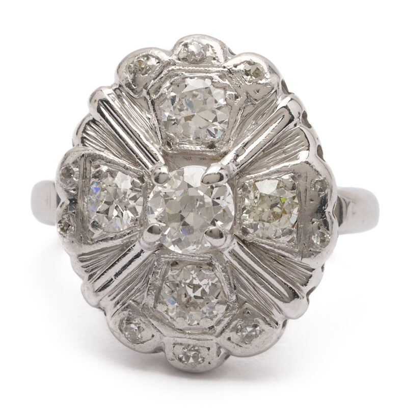 Lot 1260: 18K White Gold Diamond Jabel Ring
