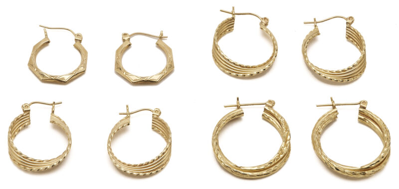 Lot 1253: 4 Pairs 14K Gold Earrings