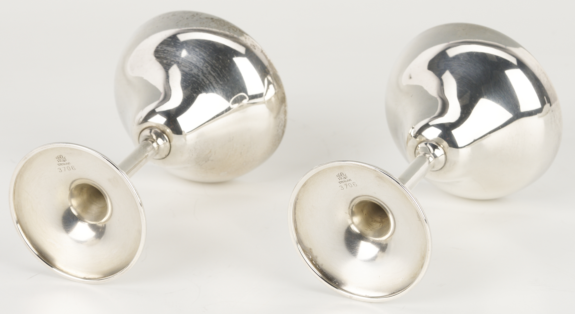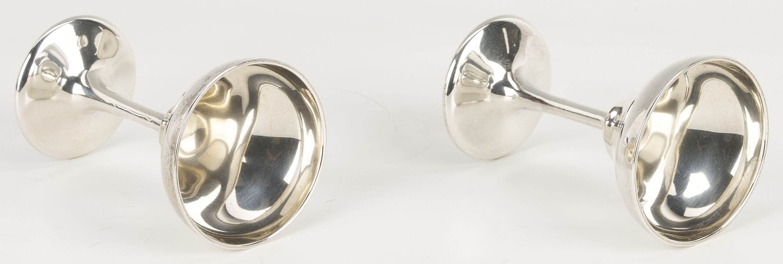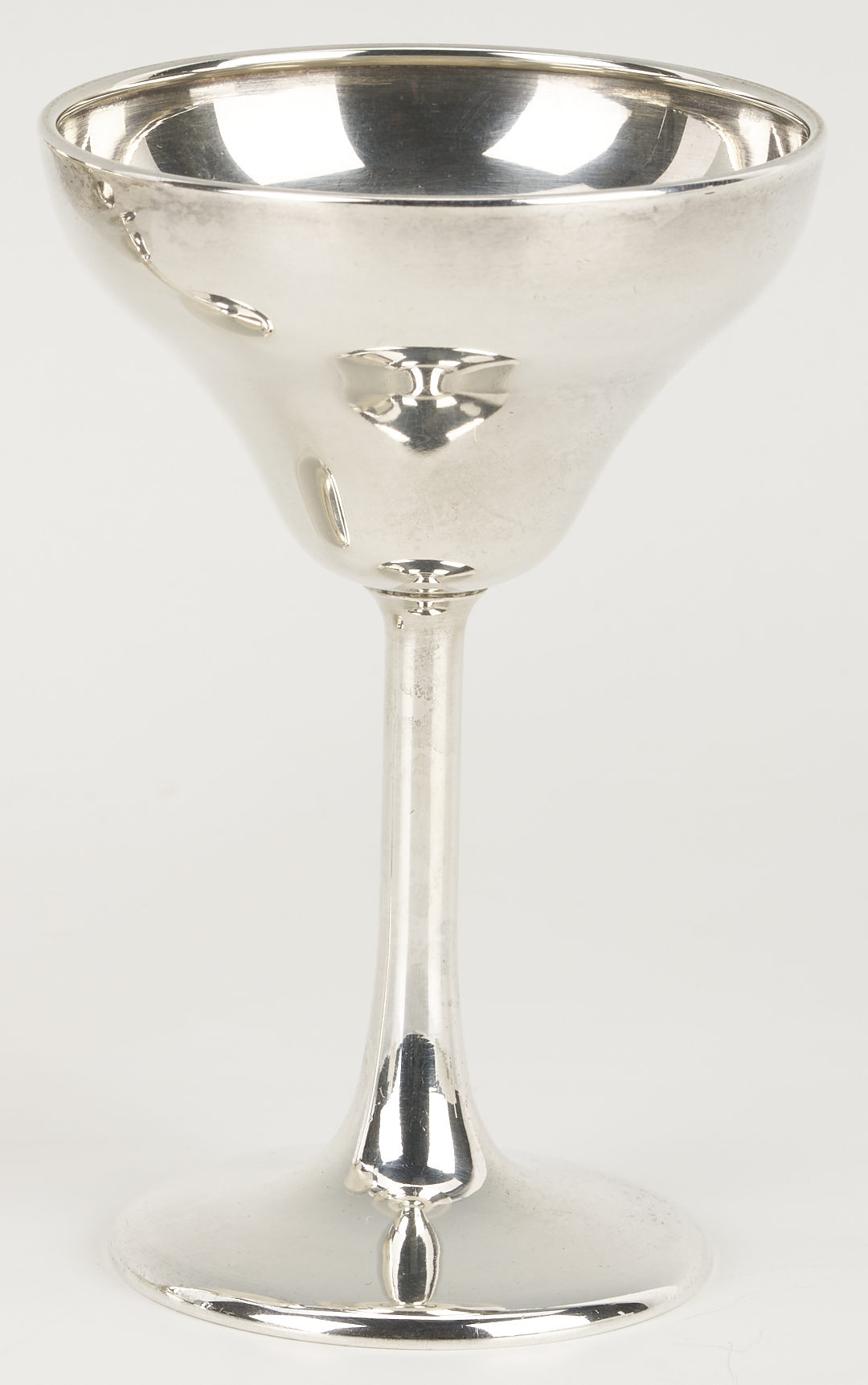 Set of eight (8) Mid Century Modern sterling silver champagne, sherry or cordial cocktail goblets, stamped to underside for maker and pattern number, Frank Smith Silver Company, #3706. Each 4 1/4 in. H. Combined weight 14.91 oz troy.