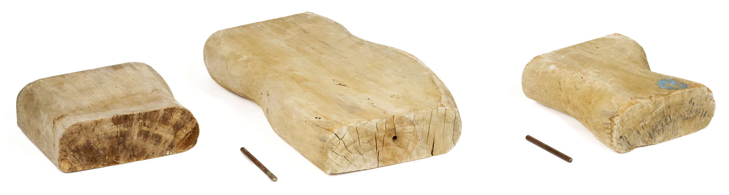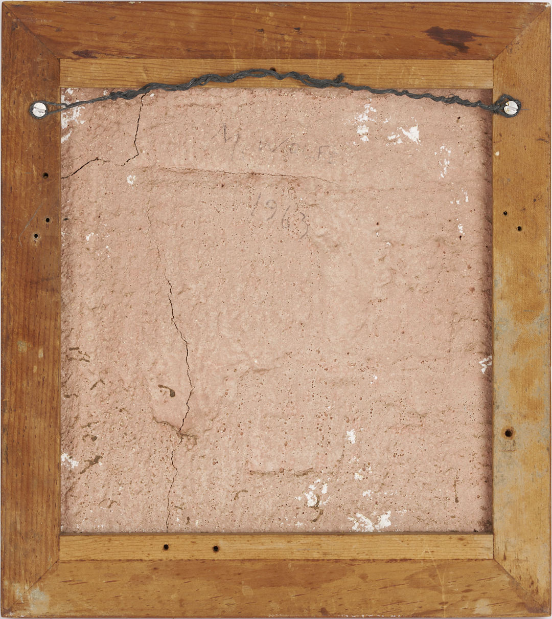 CONDITION: All items in overall very good condition. Item 1 with minor abrasions to frame edges and perimeter. Item 2 with shrinkage fissures noted to right front side of plaque and en verso. Item 3 with natural age cracks and irregularities to wood; a few tiny paint splatters.