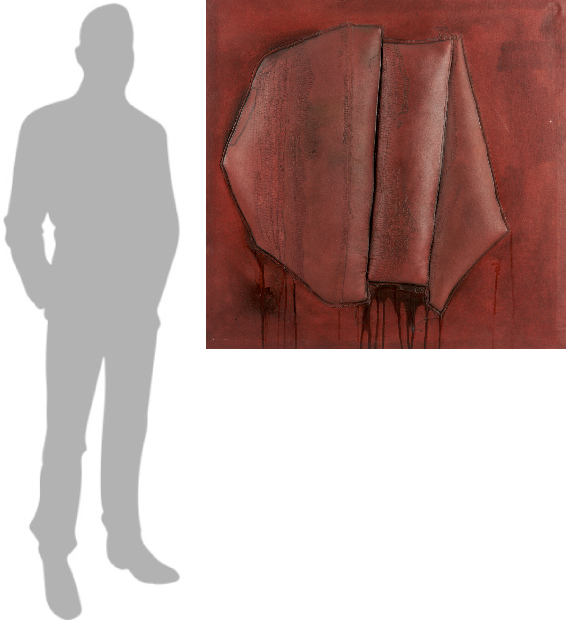 Overall very good condition. Some minor losses to edges. Diagonal abrasions to the upper right side of the canvas, the longest measures approximately 12 in.