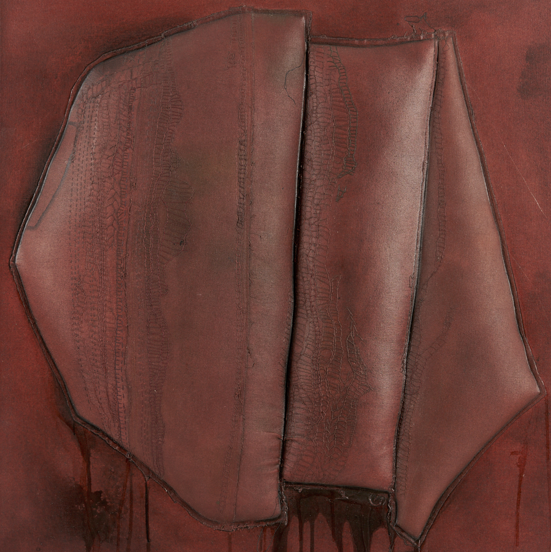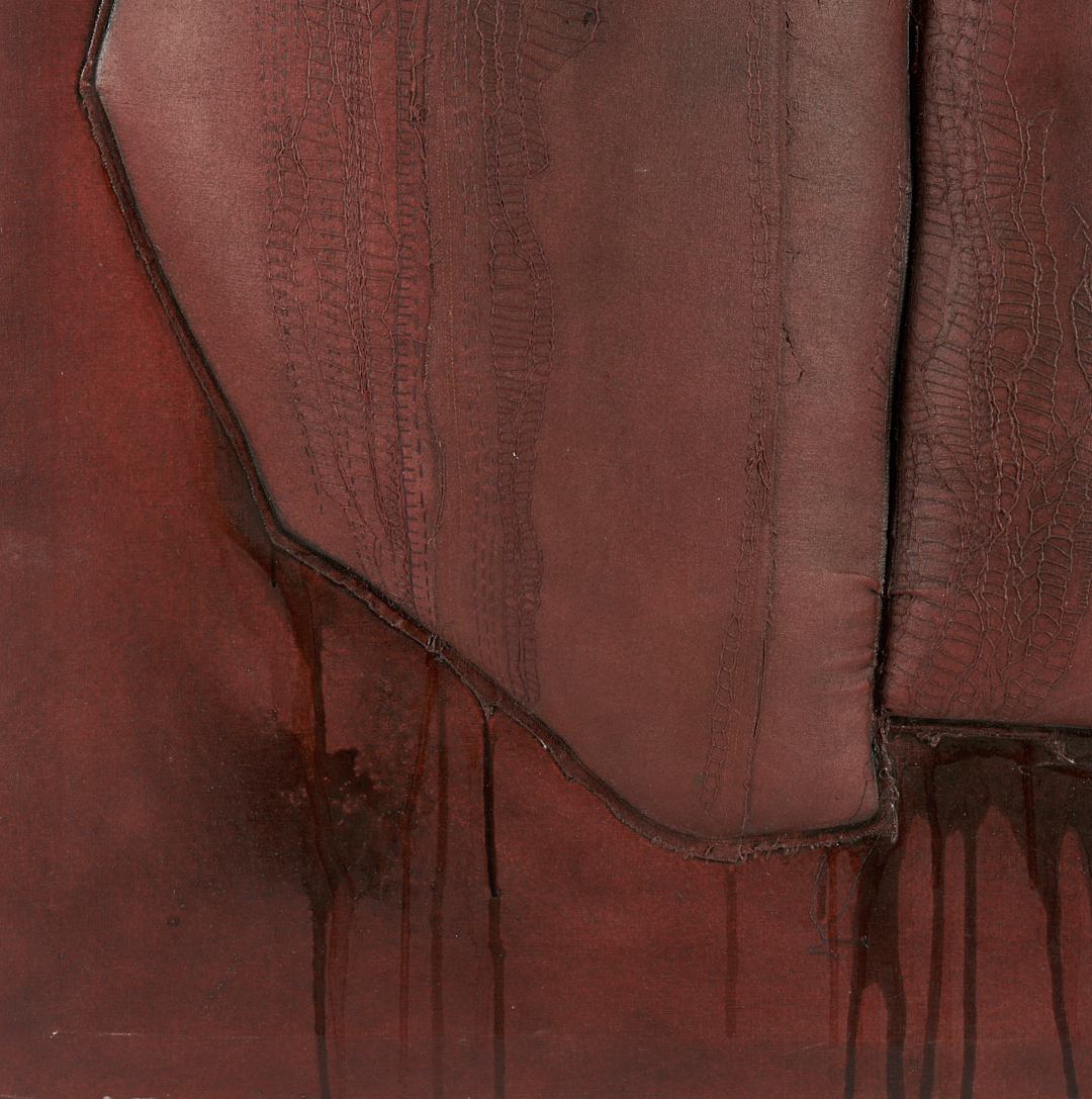 Maxine Nichols McClendon (American, born 1931) abstract monochrome acrylic painting on stuffed and sewn canvas titled “Steamboat Springs.” Signed, titled, and numbered 229 en verso. Canvas: 41 in. H x 42 5/8 in. W.