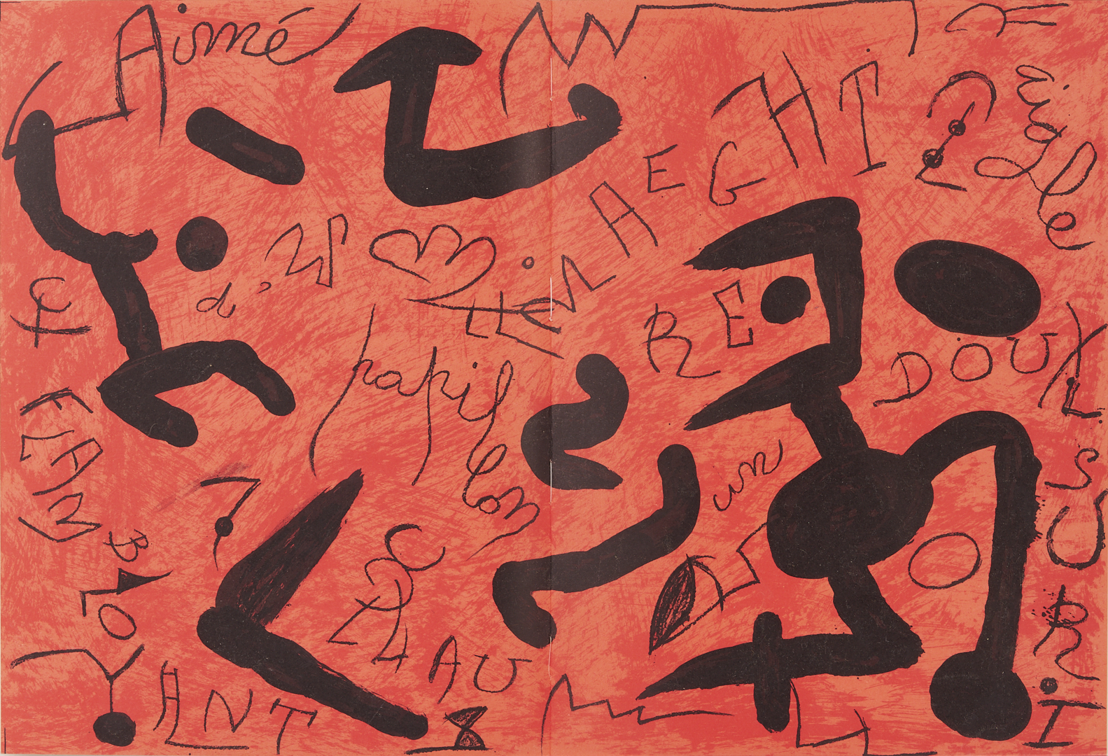 Derriere le Miroir No. 250, Hommage a Aime et Marguerite Maeght. A special anniversary edition with twenty-five (25) original lithographs by artists including Chagall, Miro, Steinberg, Tapies, and others. Published by Maeght, Paris, 1982. Also includes original lithographs by Adami, Alechinsky, Arakawa, Bazaine, Bury, Chillida, Fiedler, Garache, Gardy-Artigas, Kelly, Klapheck, Monory, Palazuelo, Rebeyrolle, Riopelle, Takis, Tal Coat, Titus-Carmel, Ubac, and van Velde. Housed in the original cardboard shipping box. Shipping box: 12 in. x 19 in. x 1 in.