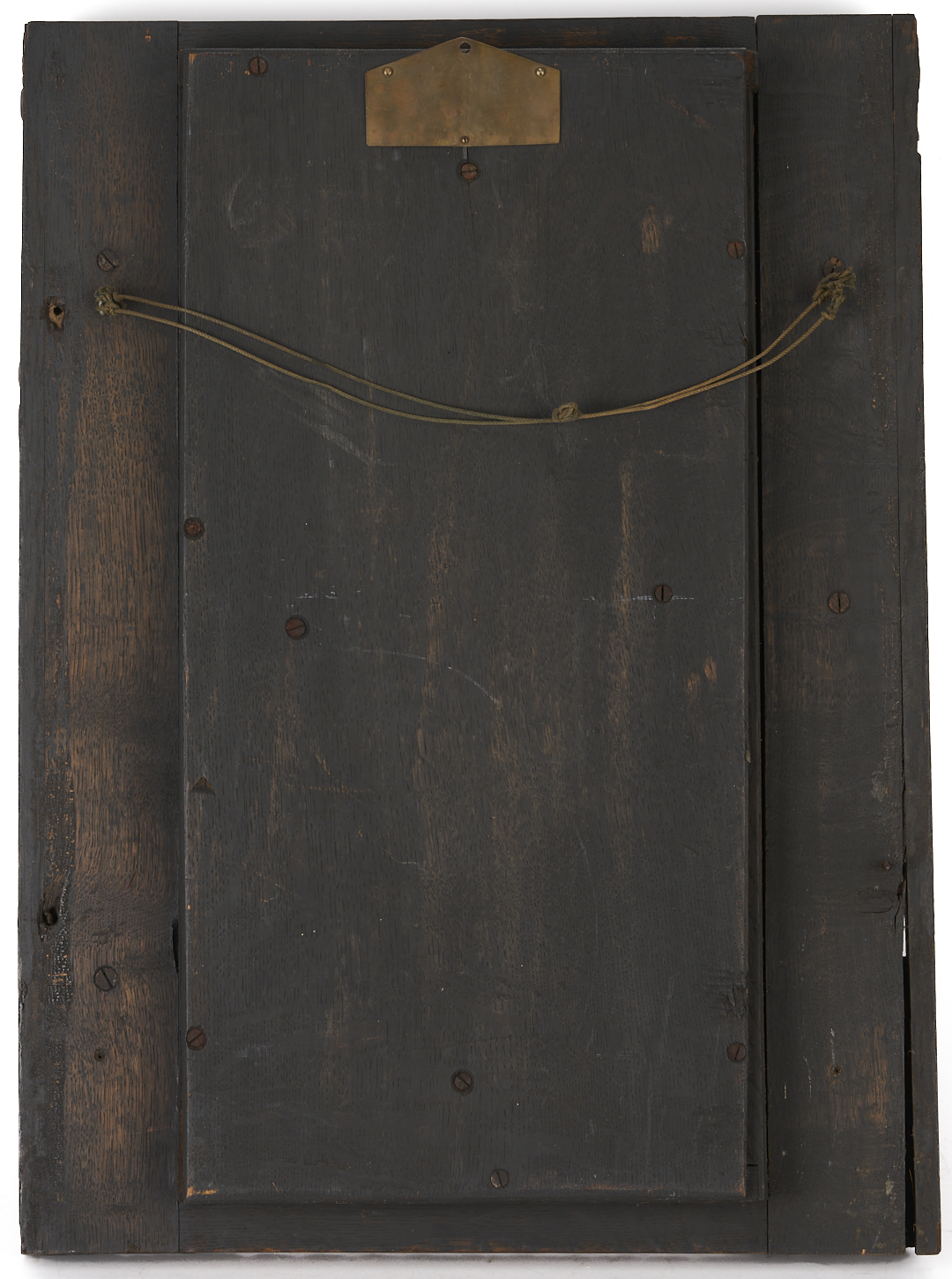 Loss to tip of lion’s nose and end of cherub’s lute; other various small losses, abrasions, pest holes and age cracks.