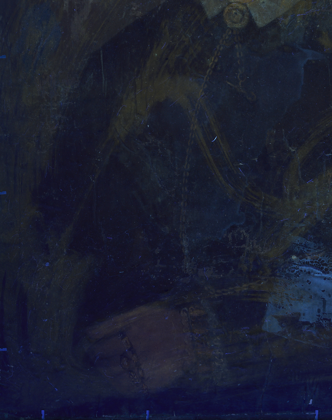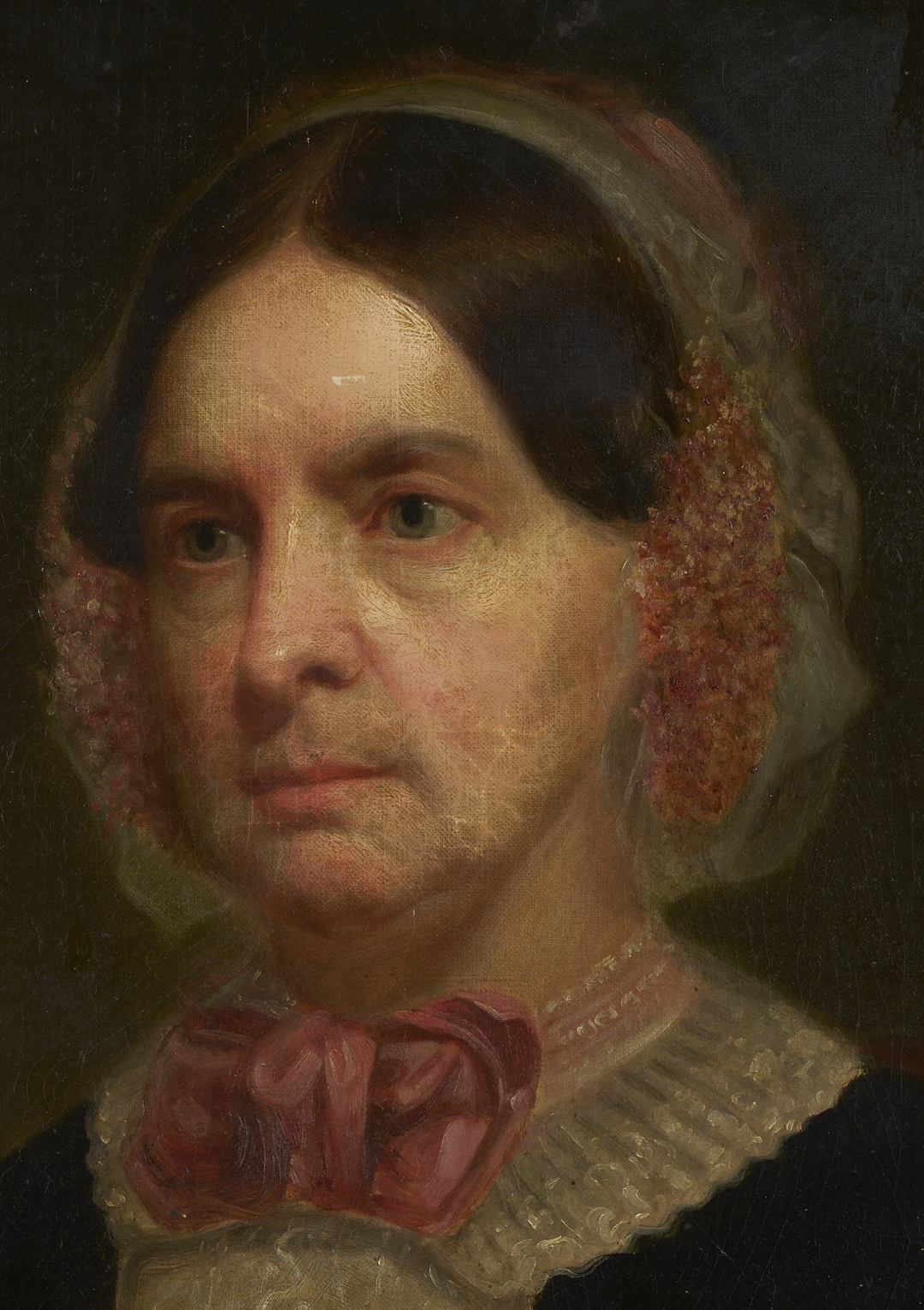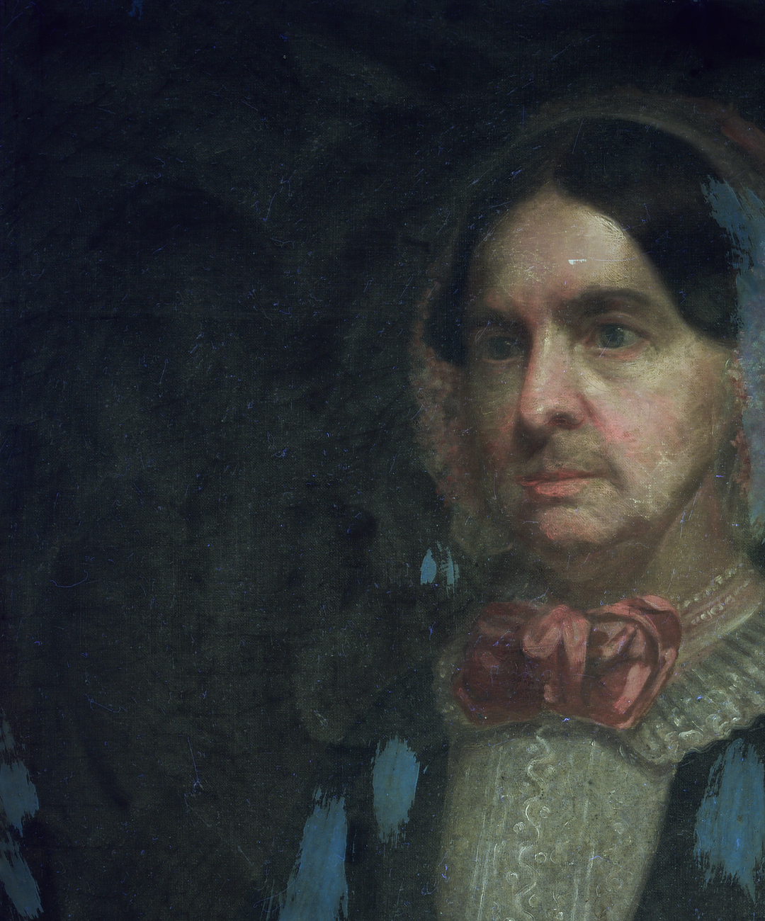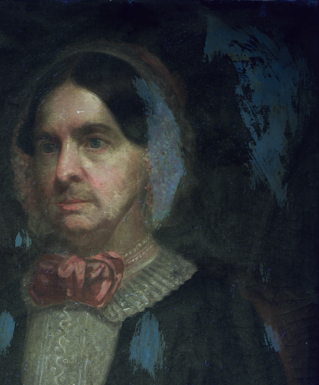Side 1: In need of restoration. Canvas has been mounted to the board and exhibits significant delamination, flaking and losses. Side 2: Canvas mounted to board. Repaired square tear lower left corner and repaired tear to lower edge. Craquelure throughout. Repairs to upper right background, lower left sleeve area, and bonnet (refer to UV photos). 1/4 in flake to subject’s forehead.