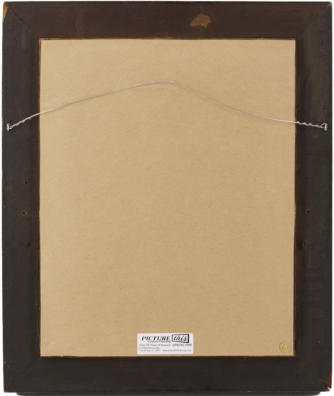 All items in overall very good condition. Not examined out of frames. Item 1 with even fading and toning to sheet plus surface grime or accretions, some possibly adhesive, primarily to background. Mat with tear without loss to lower right plus toning and surface grime. Frame with scattered abrasions. Item 2 in overall very good condition, with pinholes to lower left, in and around arm, and toning to sheet. Frame with abrasions and losses. Item 3 in overall very good condition, with a few spots of foxing.