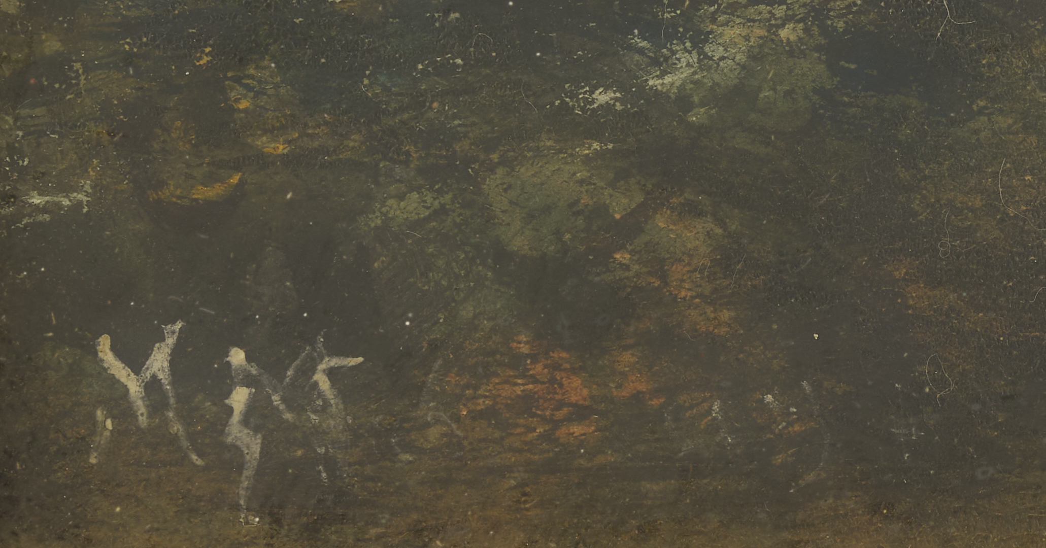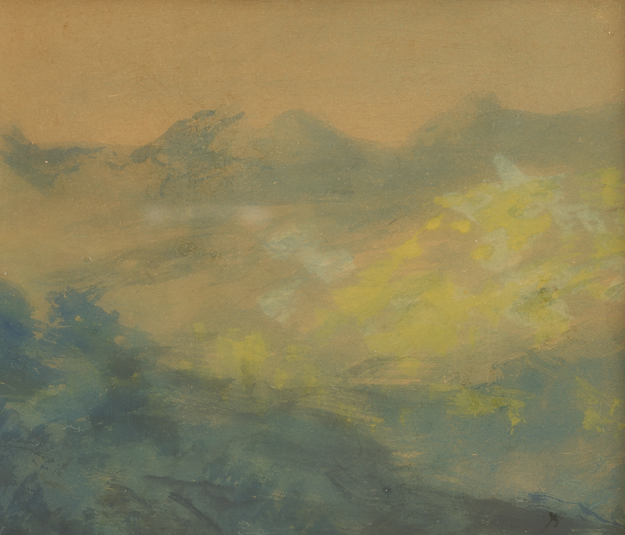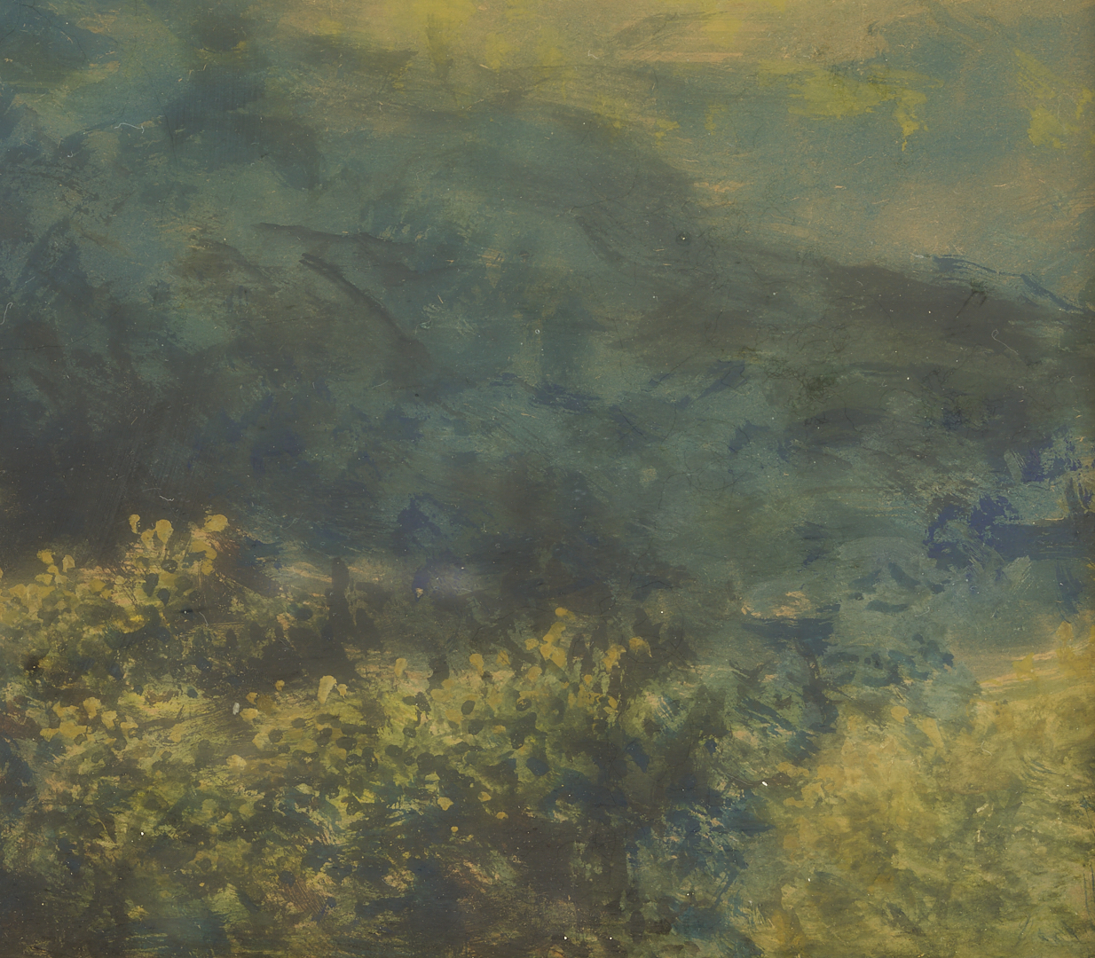 Overall very good condition, with toning to sheet and approximately 1-inch x 1/2-inch area of dampstaining to sky, upper left. Not examined out of frame. Frame with minor abrasions and losses.