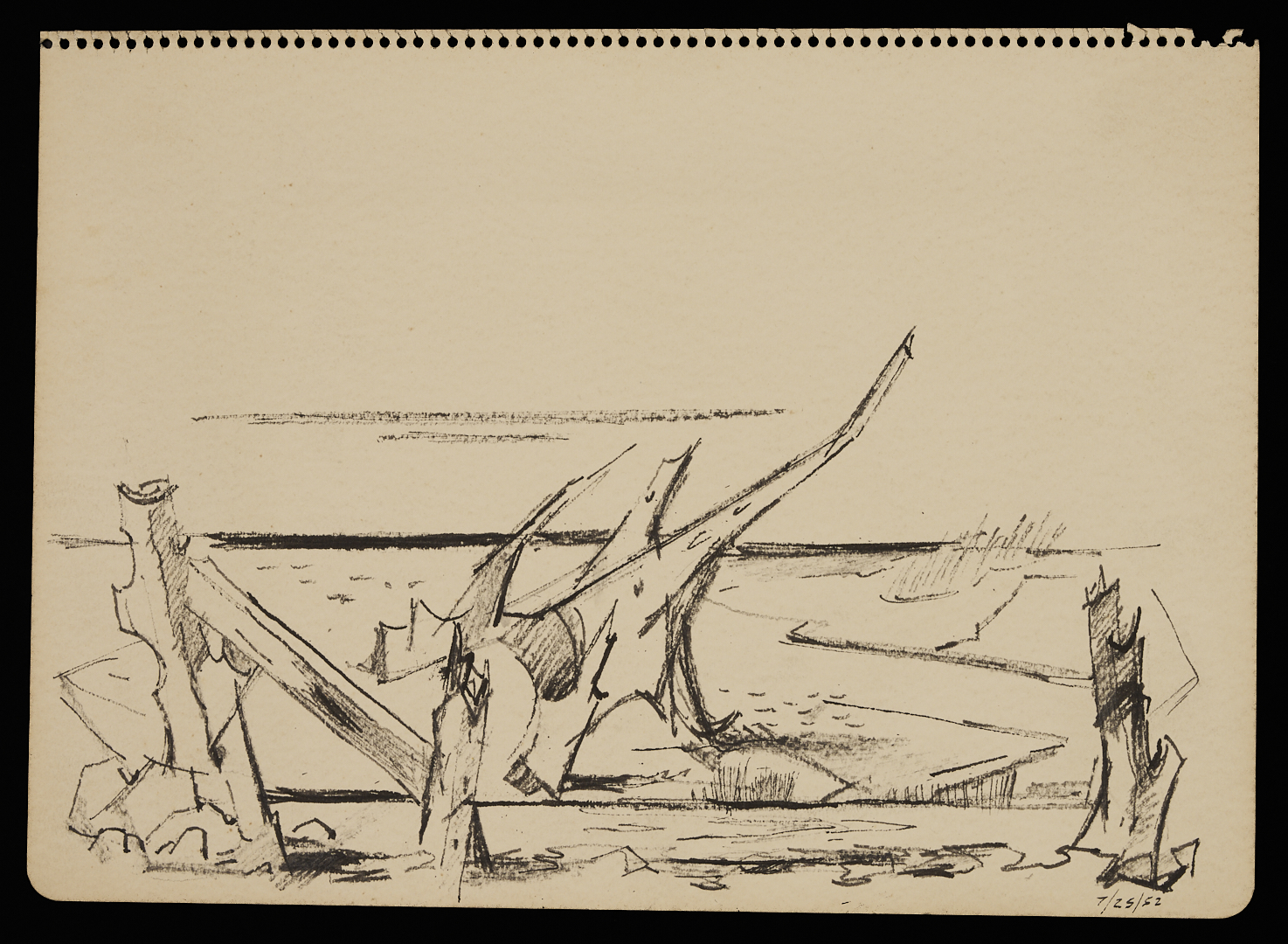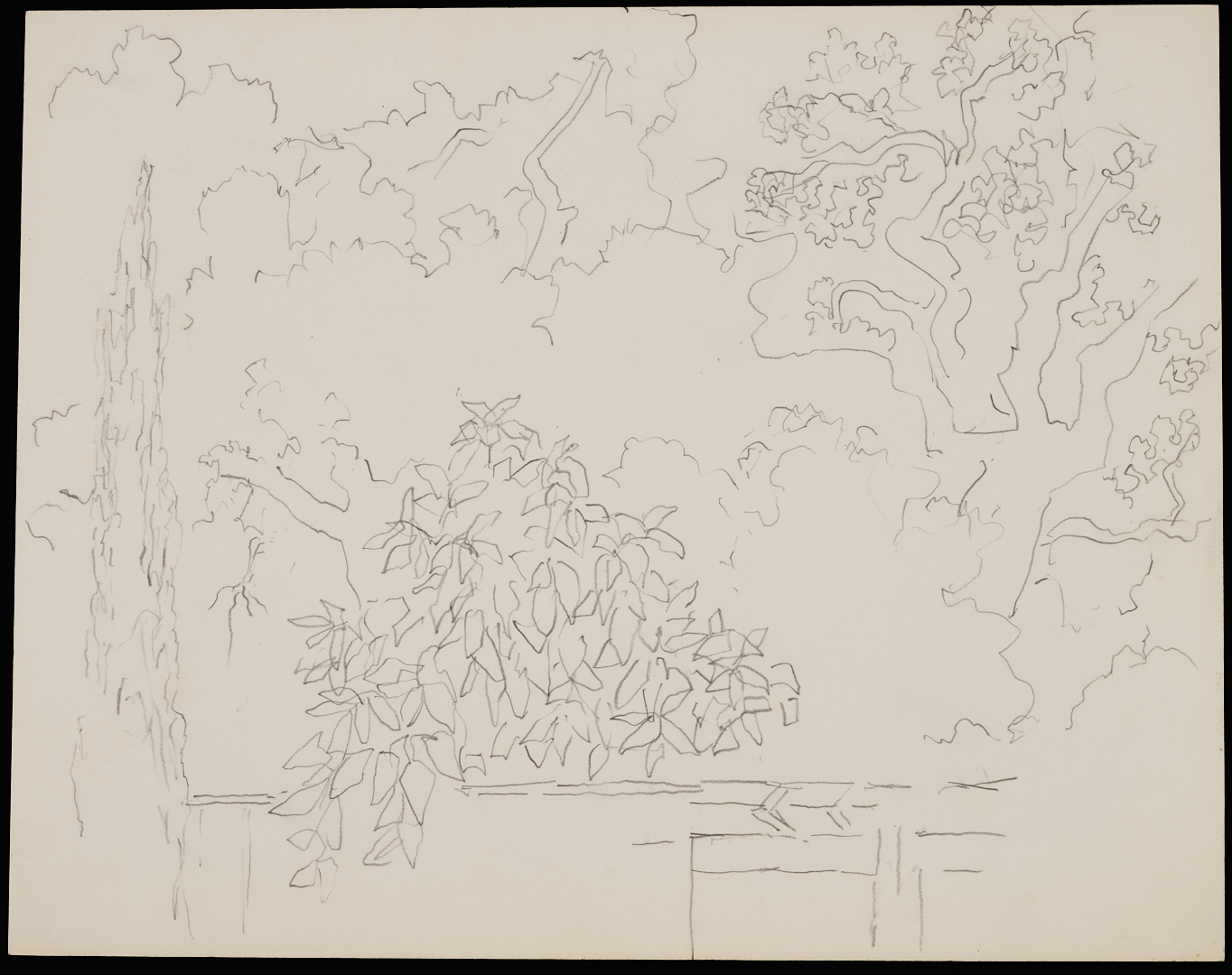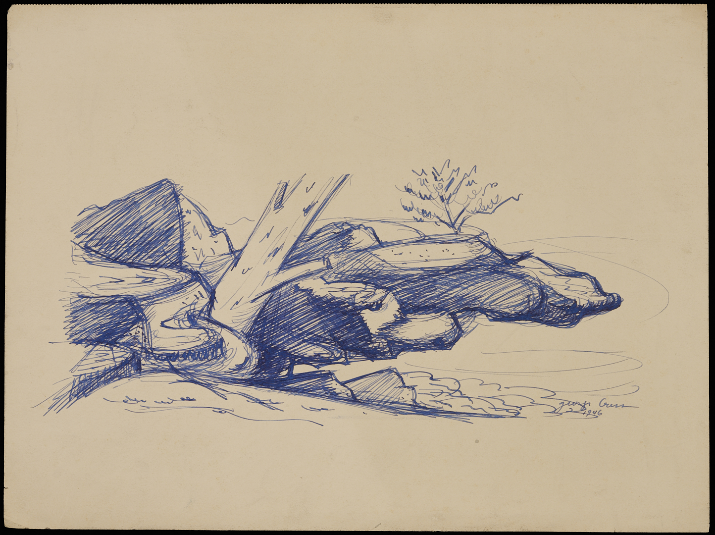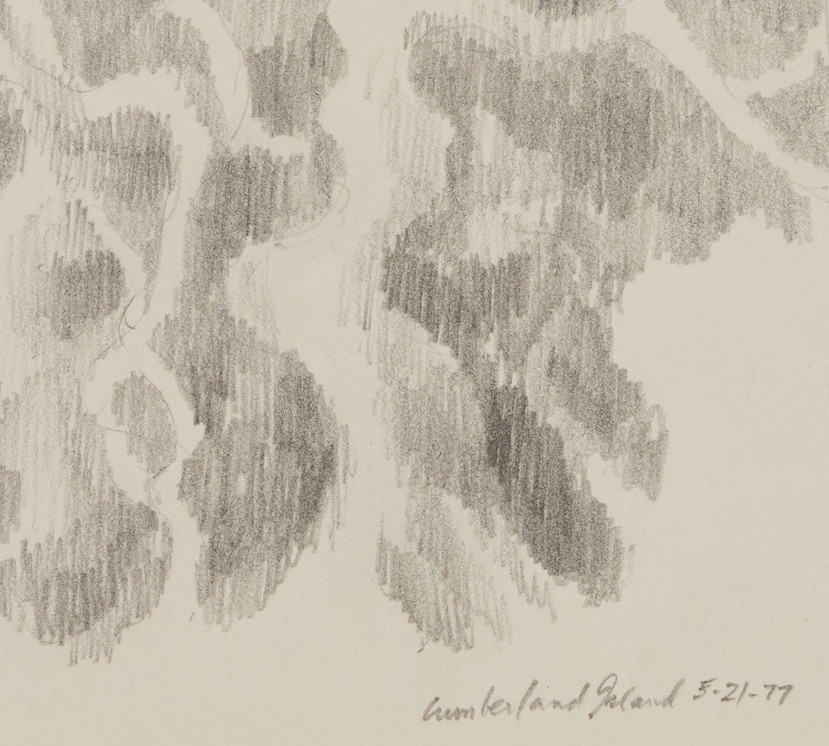 A collection of twenty-one (21) George Cress (American/Tennessee, 1921-2008) nature studies and other drawings in pencil, charcoal, and ink on paper (one on artist’s board), c.1946 – c.1990s. With Cumberland Island, Georgia, and Ogunquit, Maine subjects, among others. Includes depictions of plant life and other nature subjects, plus two drapery studies. Some signed and inscribed, all with museum accession numbers en verso. Housed in a paper sleeve. Sheet dimensions range from 17 1/2 in. x 12 1/2 in. to 8 in. x 5 in. Sleeve: 22 in. x 17 in. W.