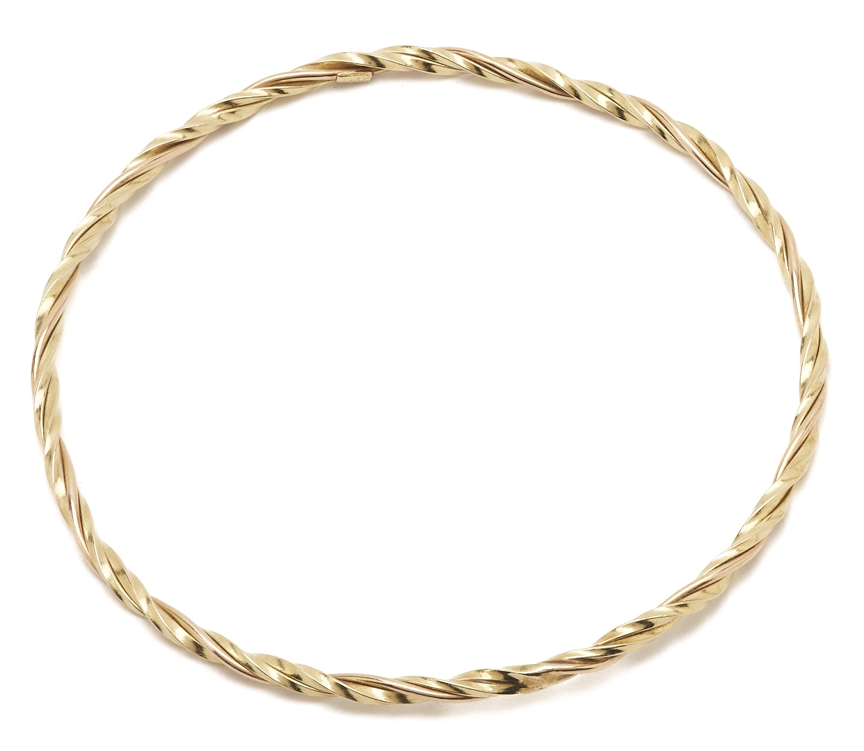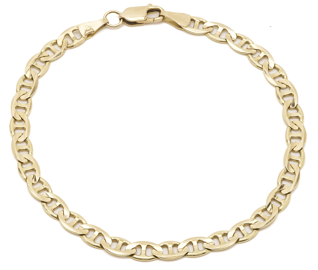 1st item: Ladies’ 14K yellow gold Italian Cuban-style chain bracelet. The bracelet is marked “14K Italy 585” and XRF tests 14K gold. The bracelet is 7 1/2 in. L. and weighs 7.36 grams. 2nd item: Ladies’ 14K yellow gold bangle bracelet. The bracelet is marked “J 14K” and XRF tests 14K gold. The bracelet is 7 1/2 in. circumference and has a weight of 4.00 grams. Gross weight of the lot is 11.36 grams.