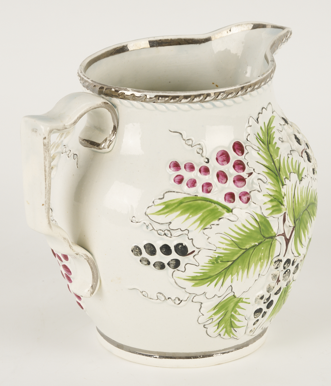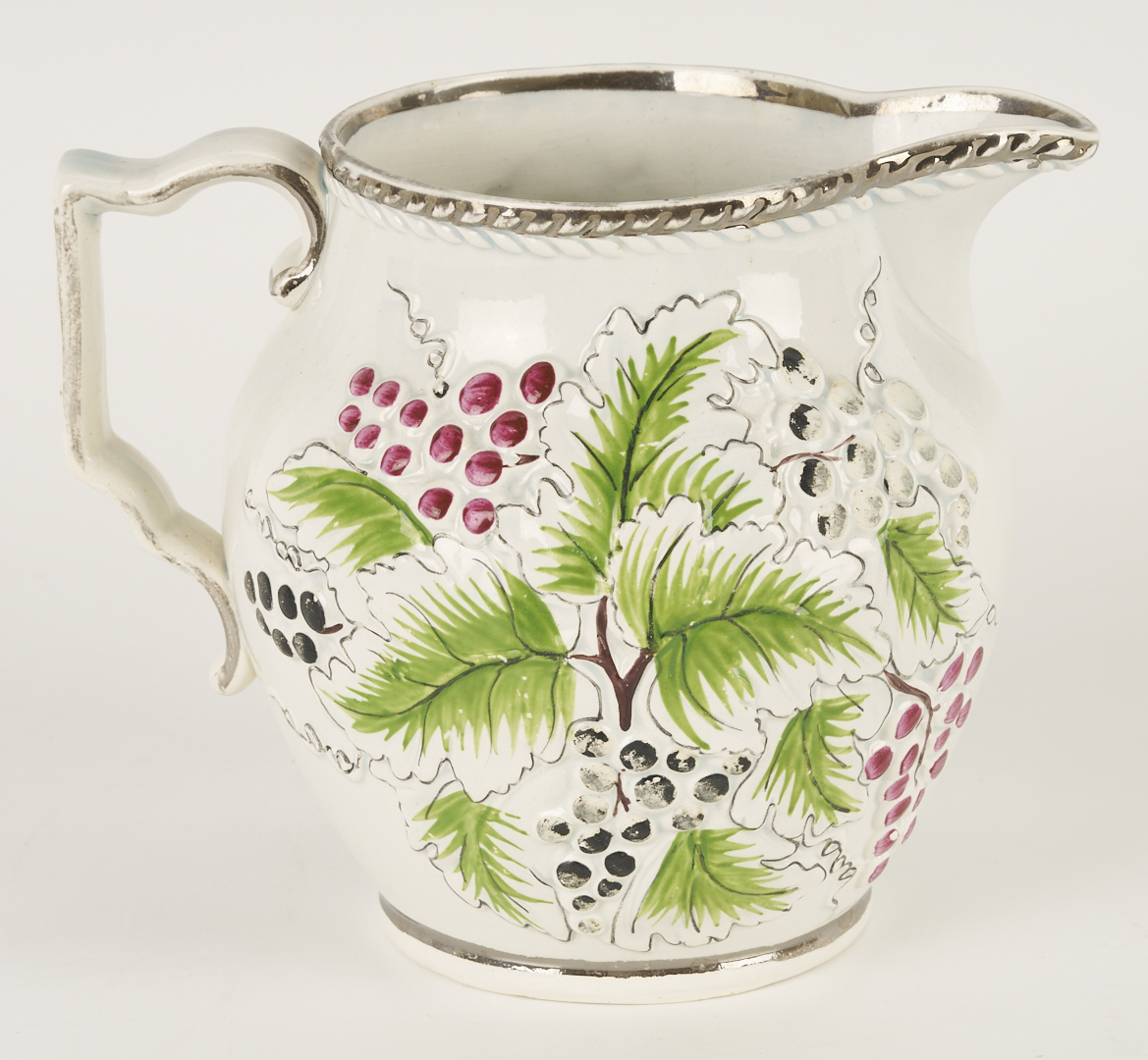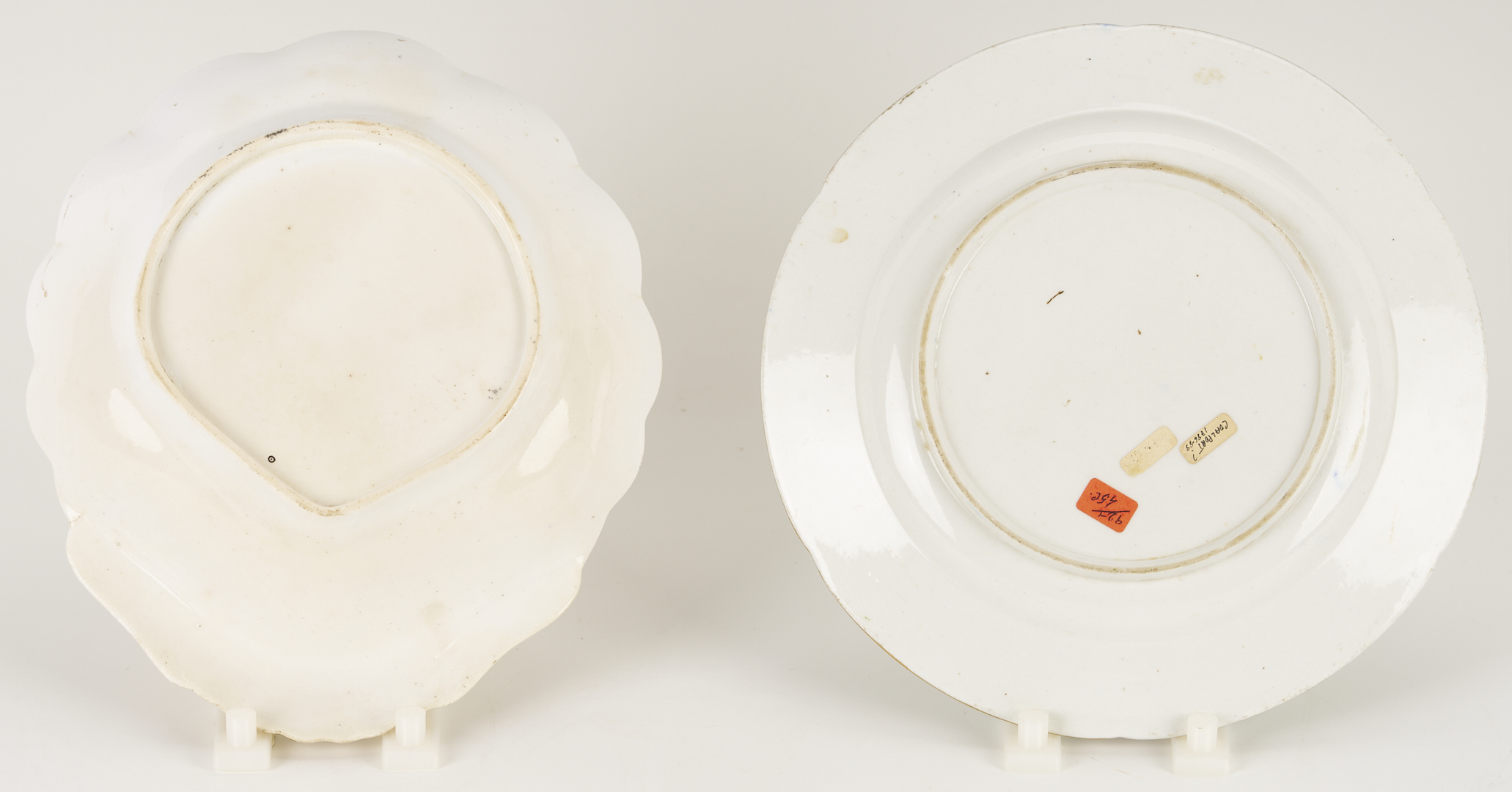 Five (5) English porcelain items, including 2 Coalport platters and 1 Coalport plate having shaped rims and polychrome with gilt floral decoration; 1 relief molded pitcher with leaf and berry decoration and silver lustre rim, possibly Spode; and a Spode shell form porcelain dish decorated in the Japanese Imari style. Ranging in size from 1 1/4 in. H x 9 1/2 in. dia. to 1 3/4 in. H x 16 3/8 in. W. All pieces early 19th-century.