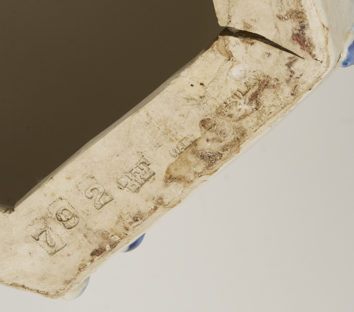 Very good condition. One has a faint, light film of persistent grime or staining to top. Firing cracks to underside of one.