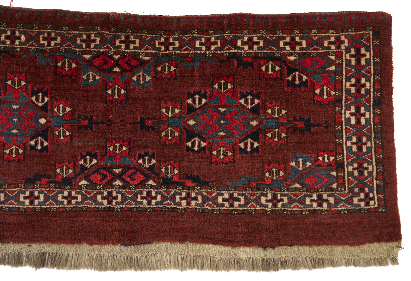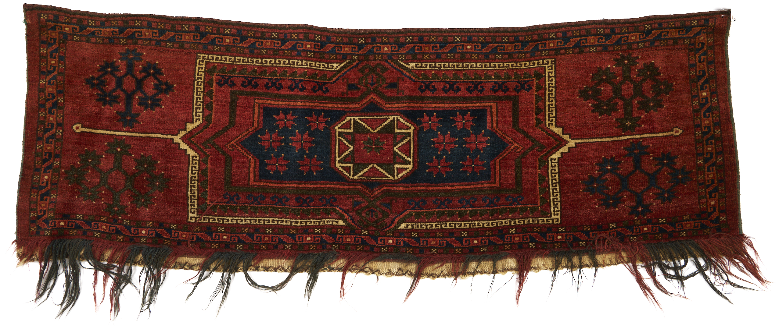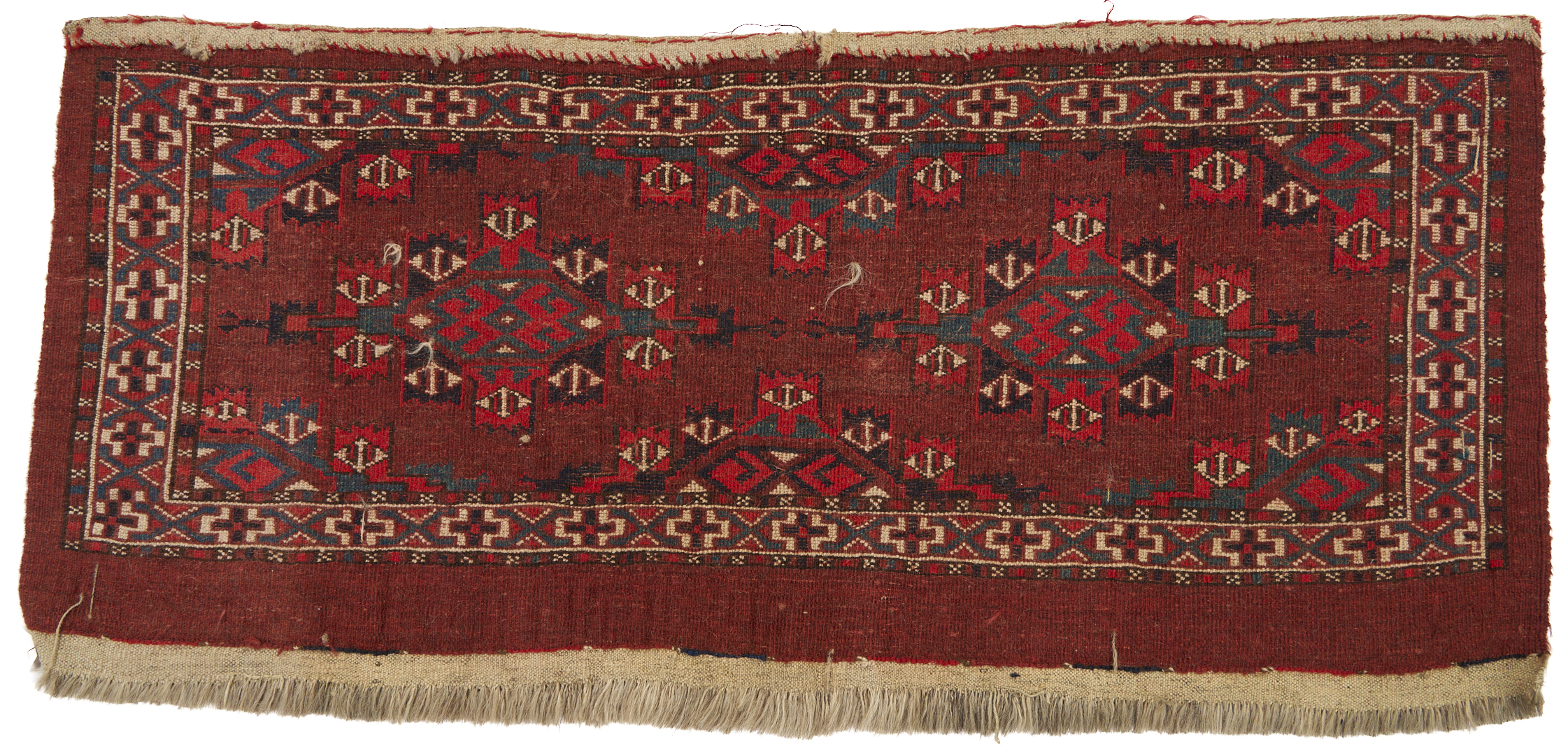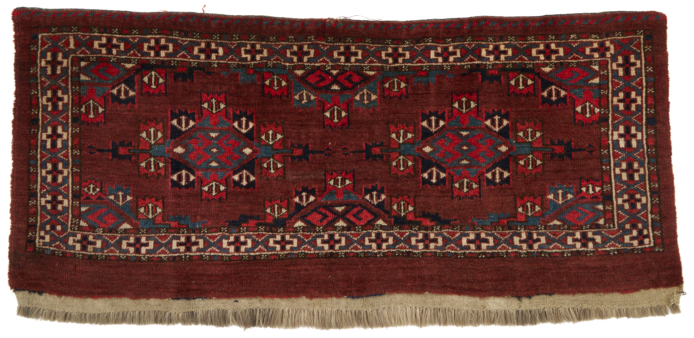 The Yomud Torba with losses to the top center, overall good condition. The Ersari weavings with losses to fringed ends.