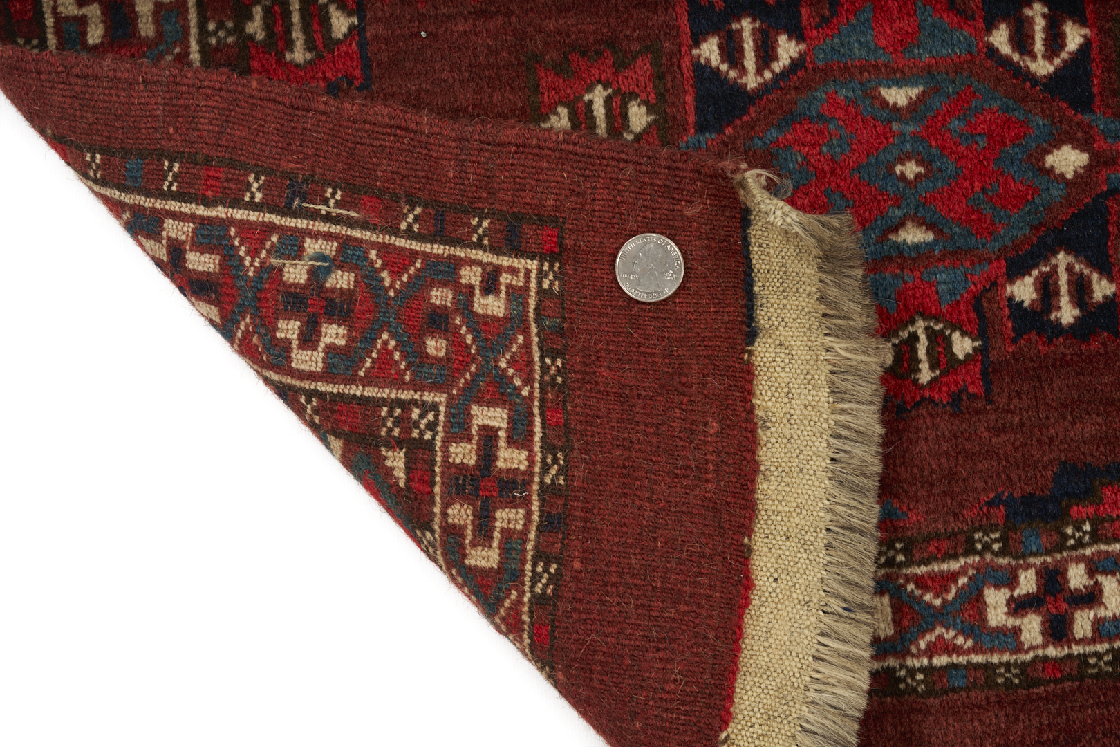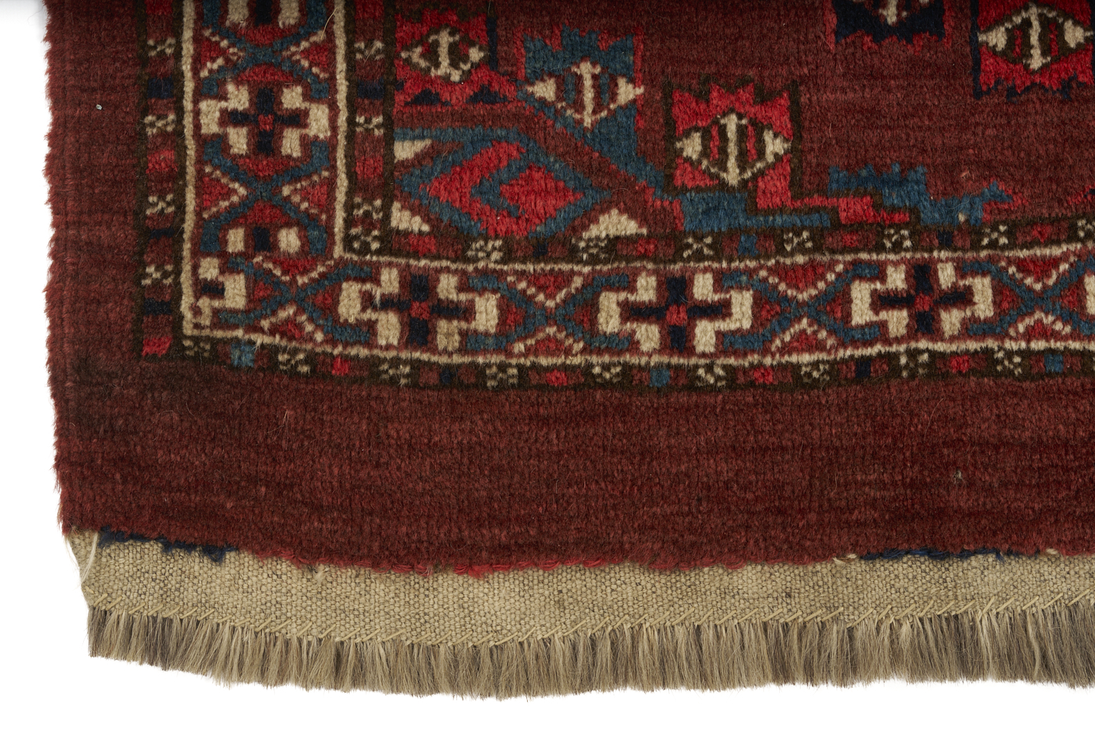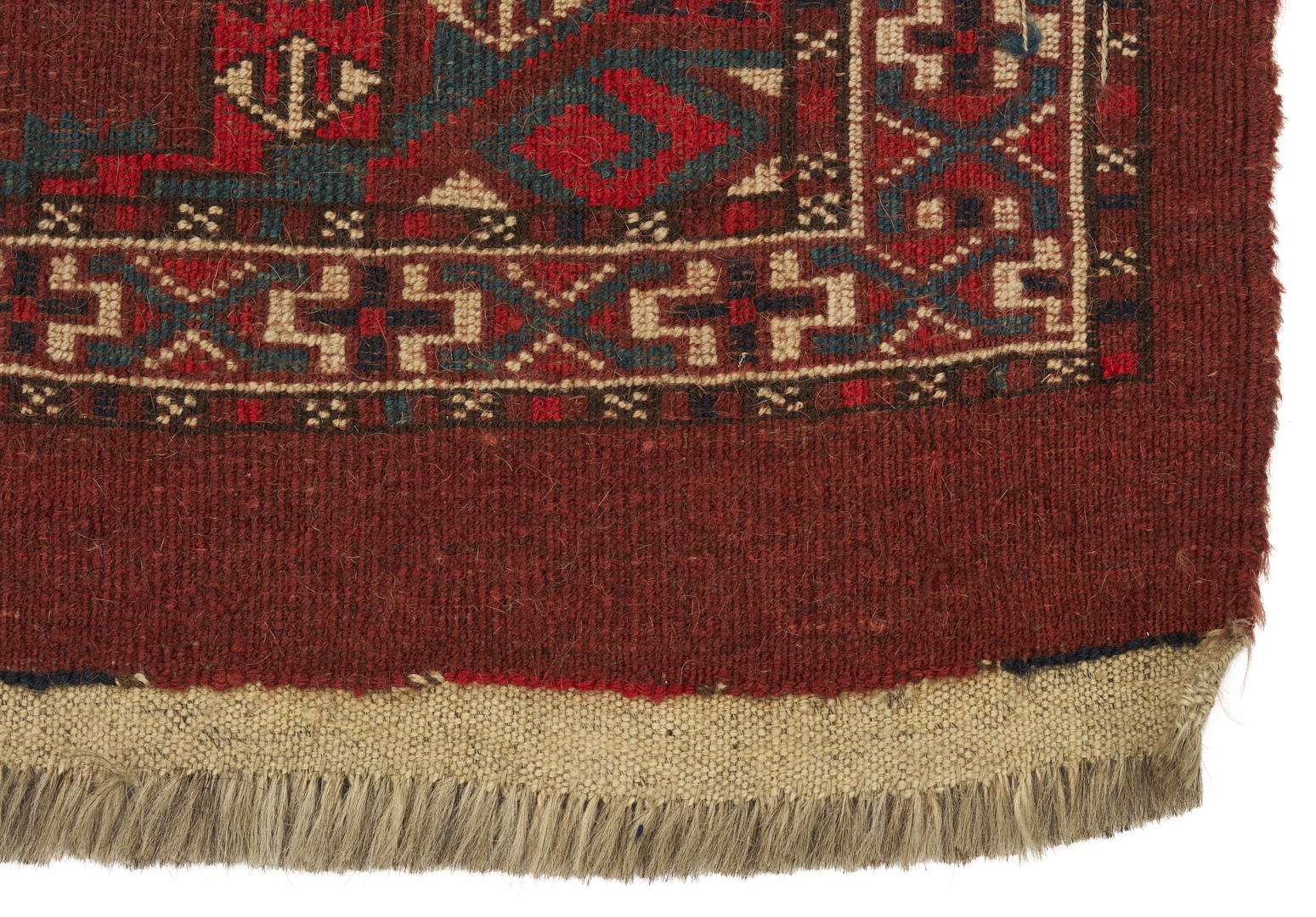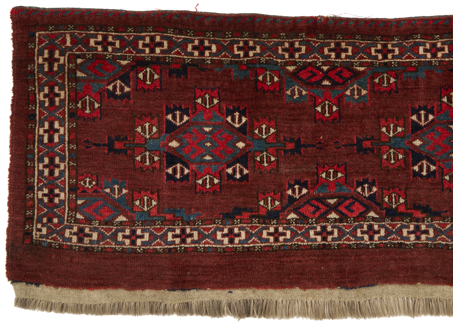 The Yomud Torba with losses to the top center, overall good condition. The Ersari weavings with losses to fringed ends.