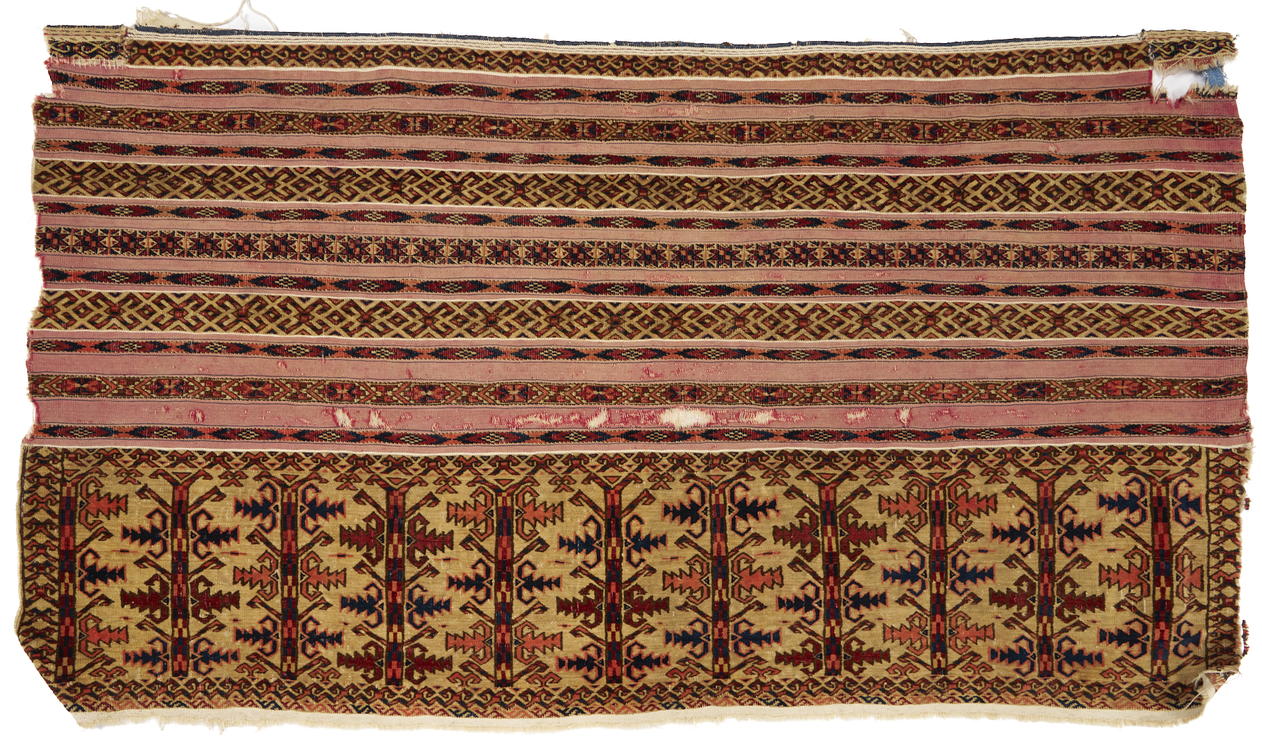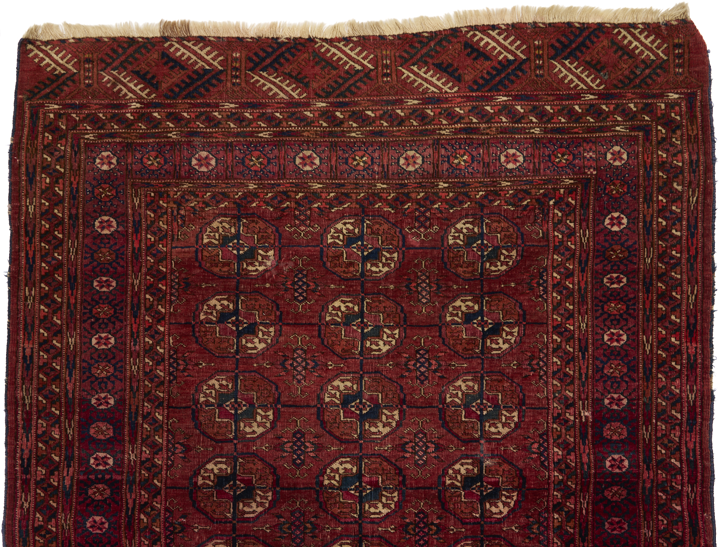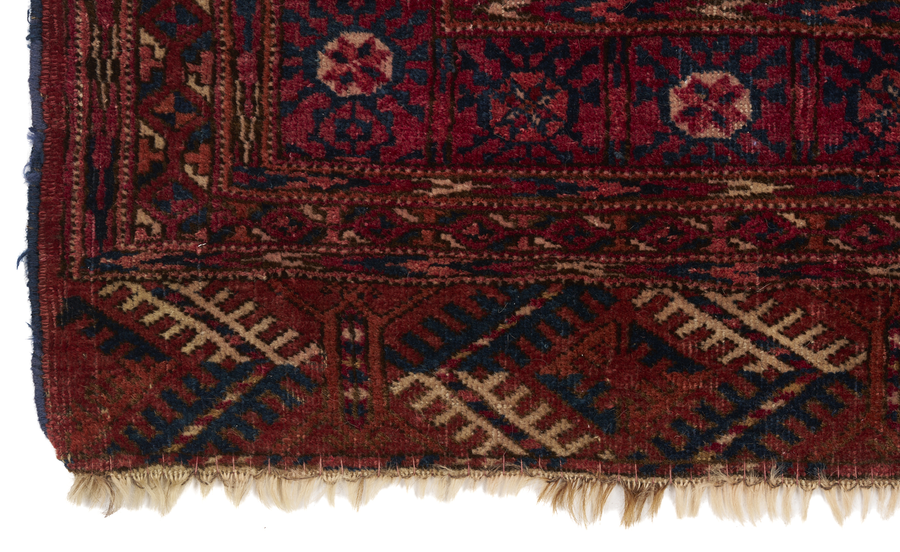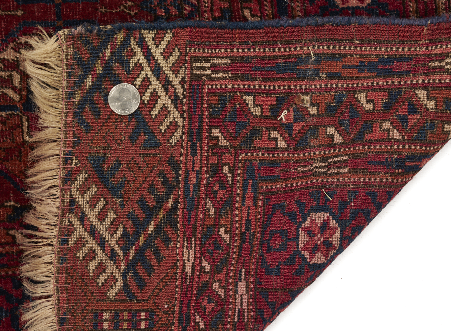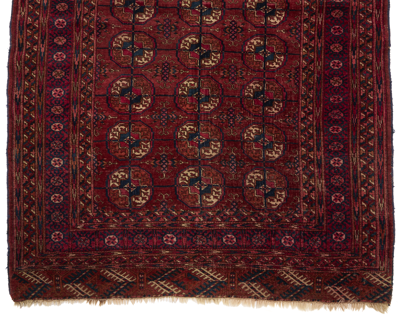 Three (3) antique Tekke Turkmen wool on wool rugs, all wool on wool and woven in traditional designs, including: a Tekke rug with a central gul design and stylized diamond borders, 5 ft 5 in x 3 ft 11 in., circa 1885; a Tekke Ak-Chuval decorated in alternating geometric bands and a wide lower stylized floral border, 4 ft 1 in x 2 ft 4 in., last Qtr. 19th century; and a Tekke floor rug with a central gul design and geometric borders, 3 ft 11 in x 3 ft 2 in., circa 1915.