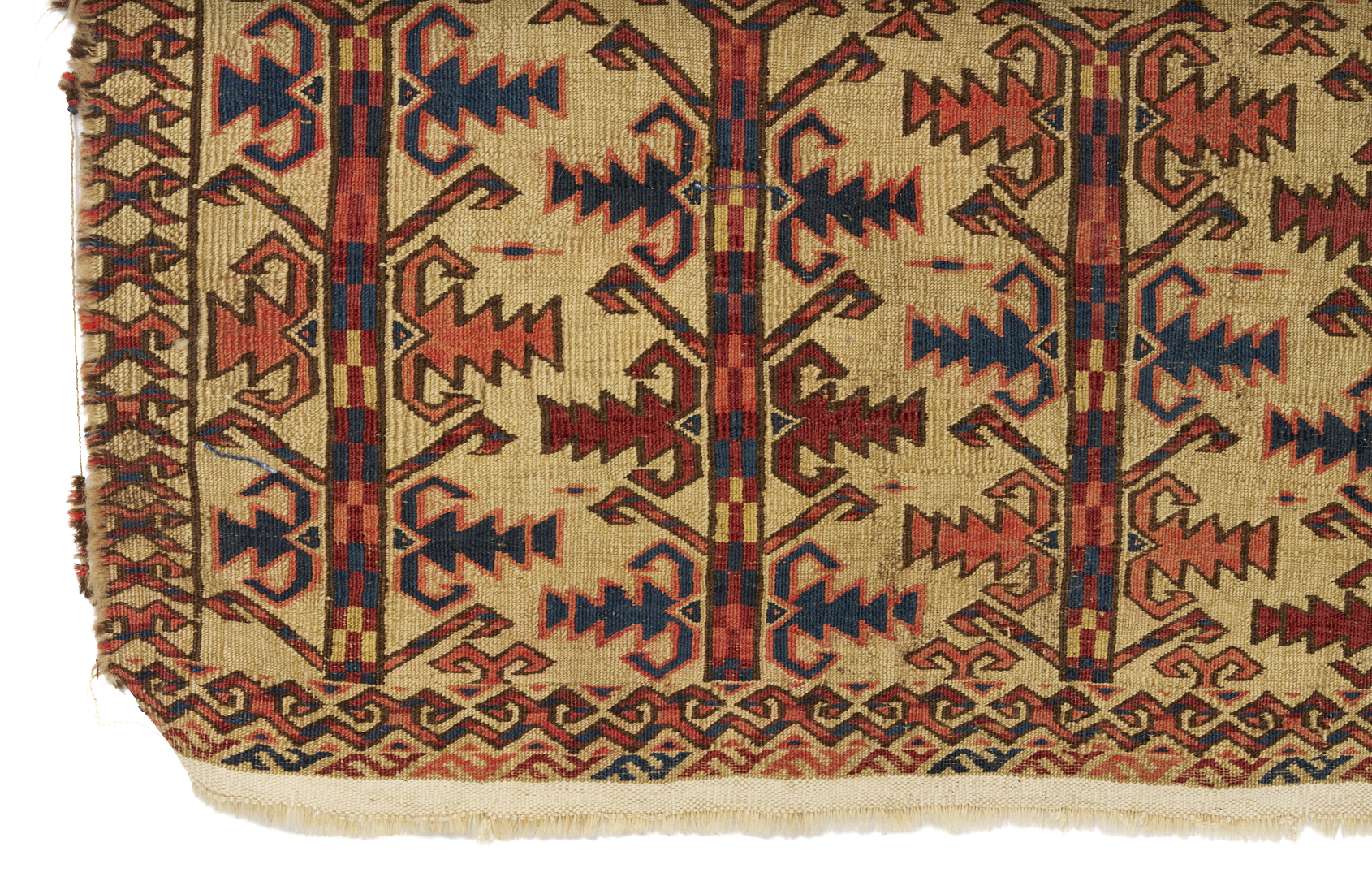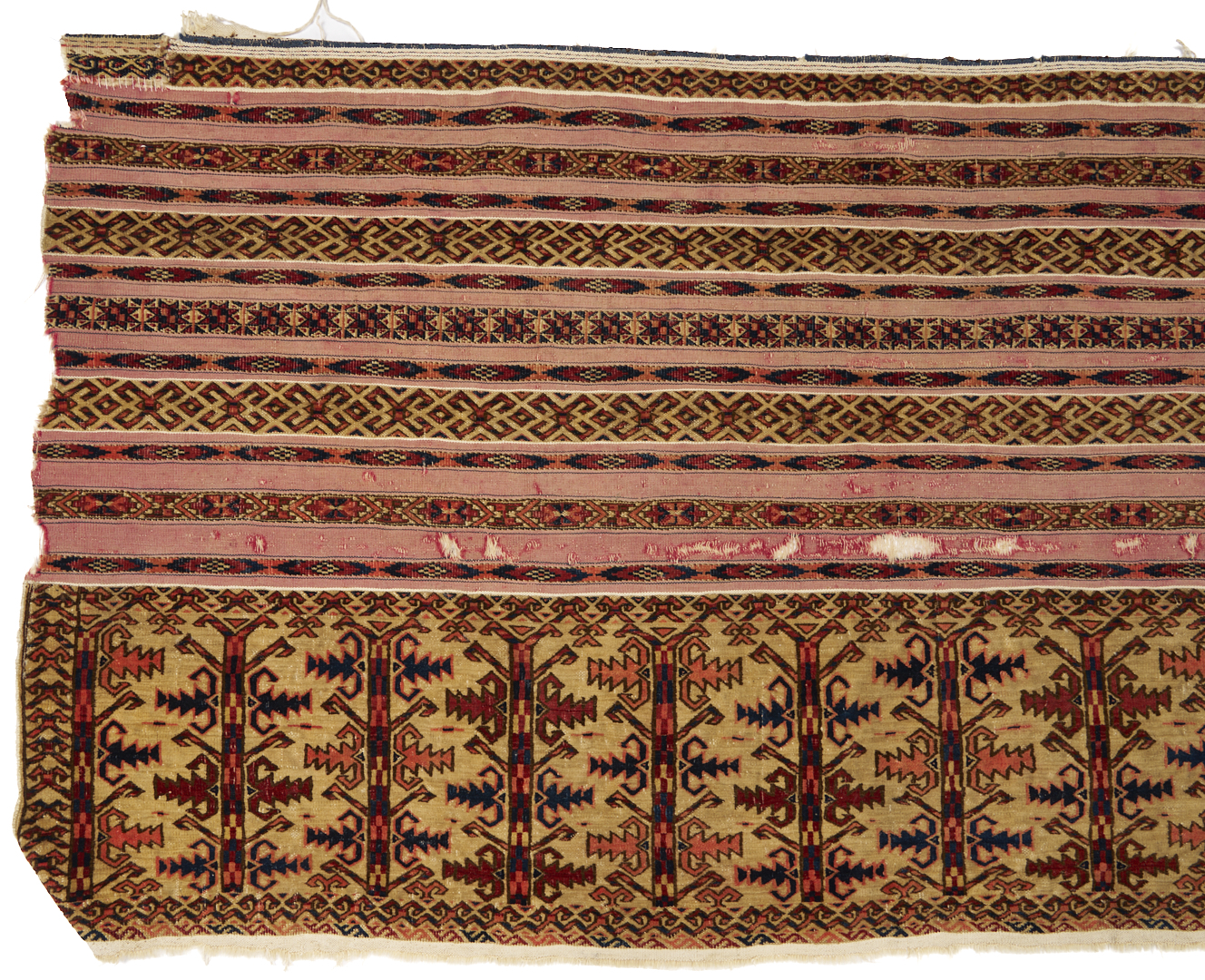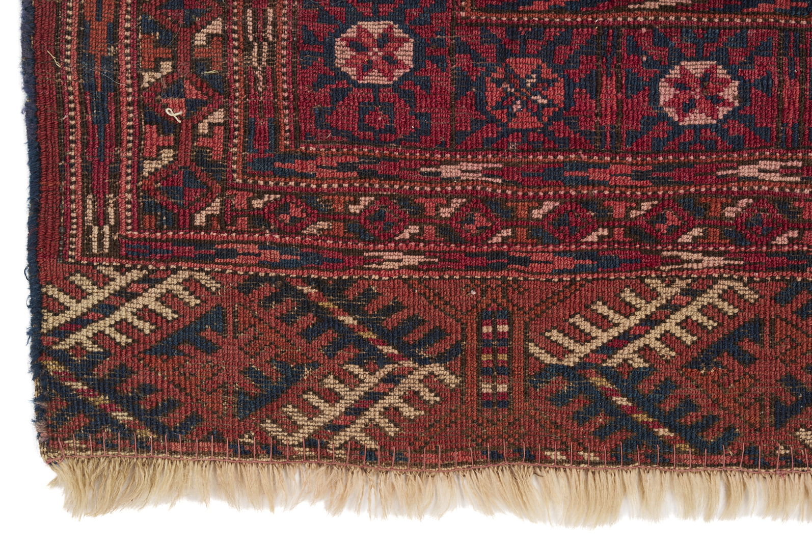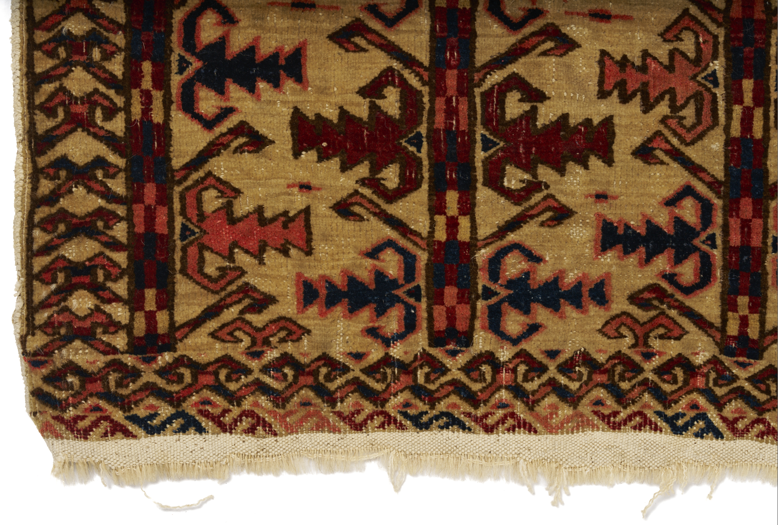 Three (3) antique Tekke Turkmen wool on wool rugs, all wool on wool and woven in traditional designs, including: a Tekke rug with a central gul design and stylized diamond borders, 5 ft 5 in x 3 ft 11 in., circa 1885; a Tekke Ak-Chuval decorated in alternating geometric bands and a wide lower stylized floral border, 4 ft 1 in x 2 ft 4 in., last Qtr. 19th century; and a Tekke floor rug with a central gul design and geometric borders, 3 ft 11 in x 3 ft 2 in., circa 1915.
