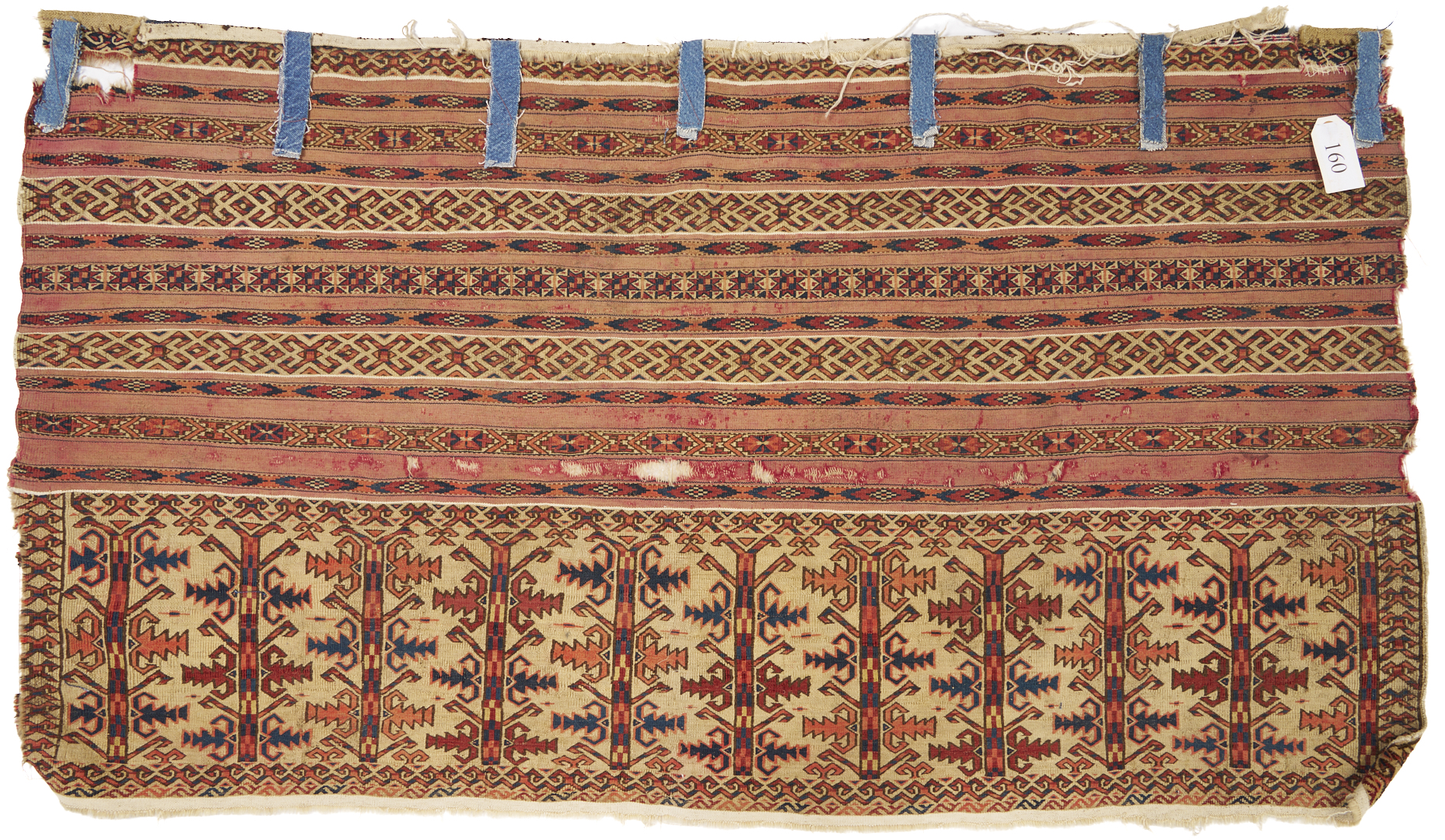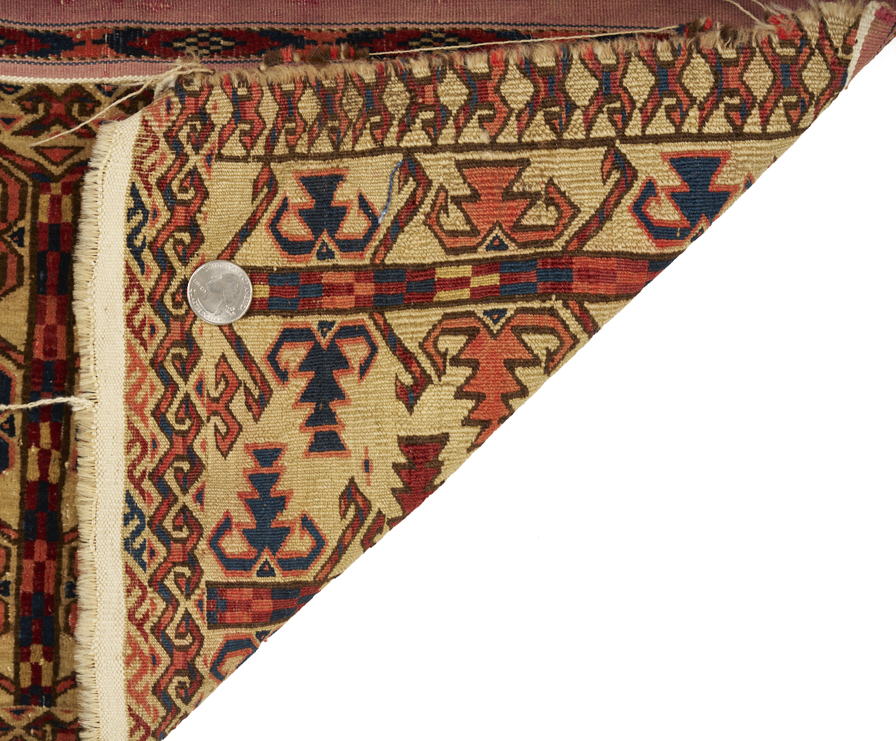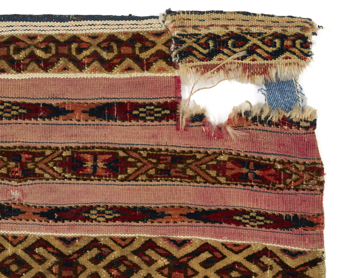 1st item: overall good condition. 2nd item: losses to sides, patches to 2 corners, fading, perforations, and losses. 3rd item: repairs to border and center, even pile wear, fringe loss, and some staining.