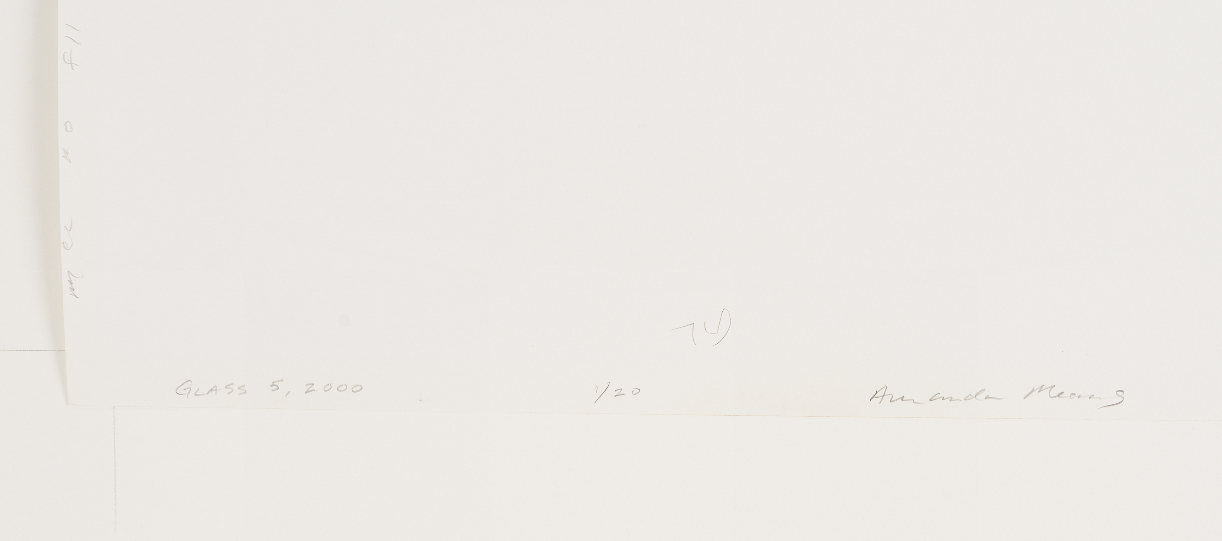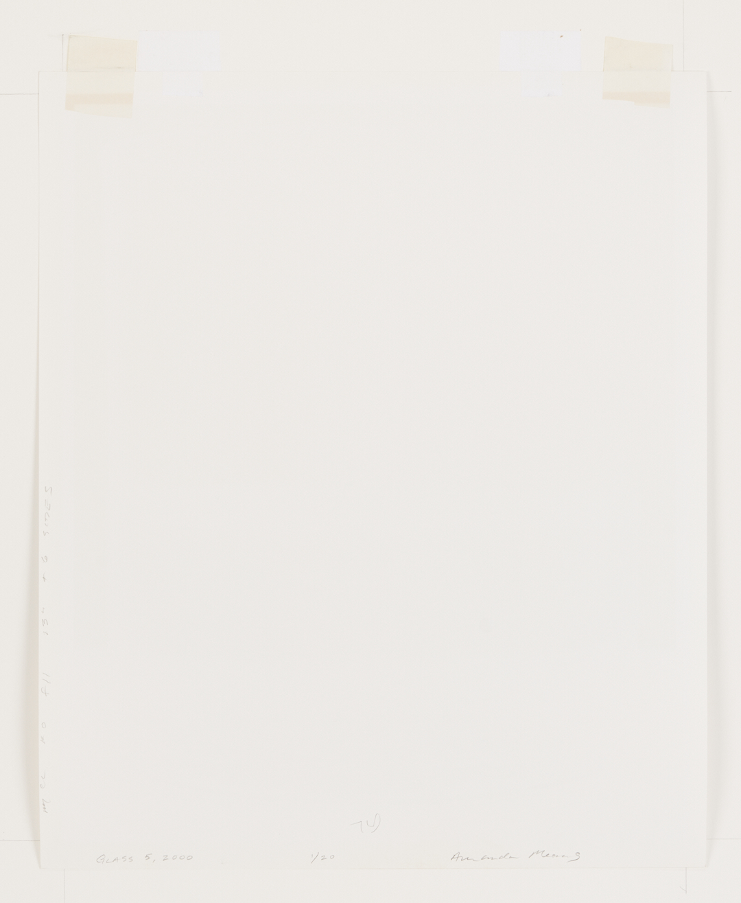 Amanda Means (American, b. 1950) “Glass 5”. Gelatin silver print, titled and dated en verso “Glass 5, 2000”, signed, and numbered “1/20” in pencil. Housed in a white composite frame under acrylic. Framed: 31 3/4 x 28 in H; Sight: 22 1/4 in x 18 1/2 in W x 1 1/4 in D.