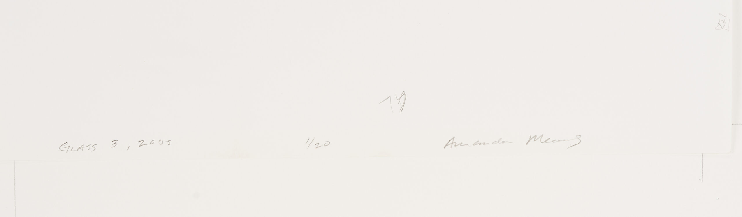 Amanda Means (American, b. 1950) “Glass 3”. Gelatin silver print, titled and dated en verso “Glass 3, 2000”, signed, and numbered “1/20” in pencil. Housed in a white composite frame under acrylic. Framed: 31 3/4 x 28 in H; Sight: 22 1/4 in x 18 1/2 in W x 1 1/4 in D.