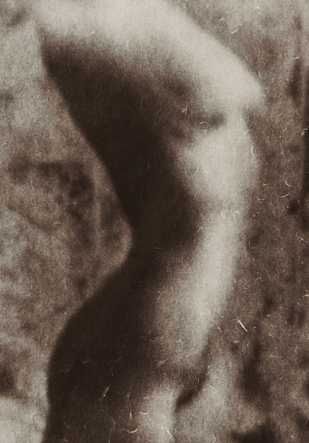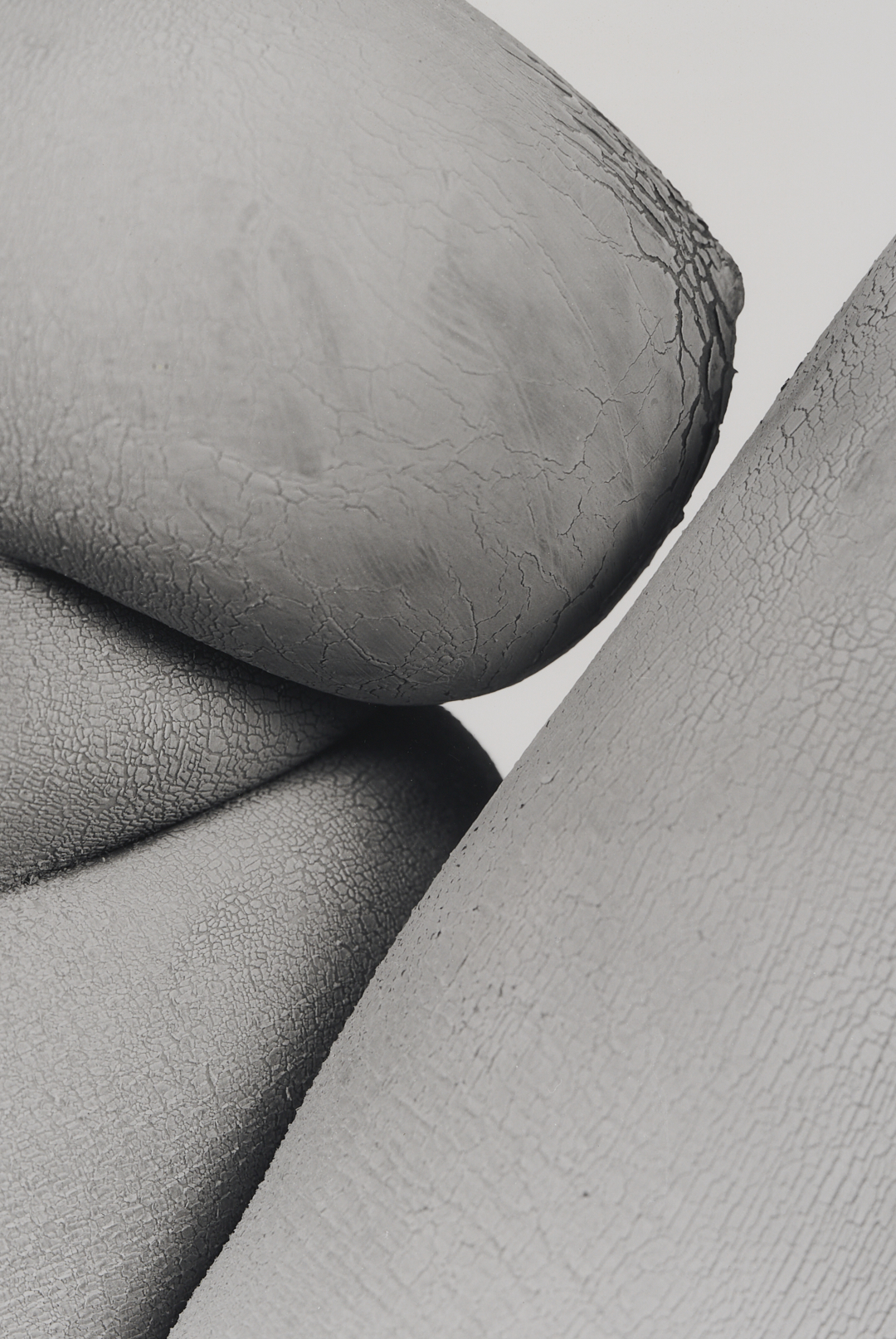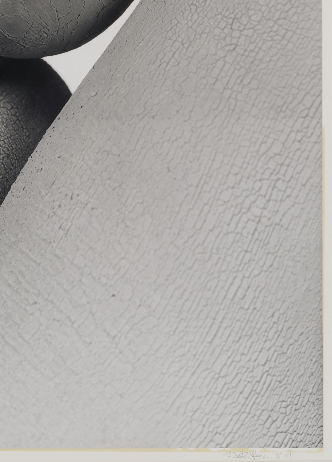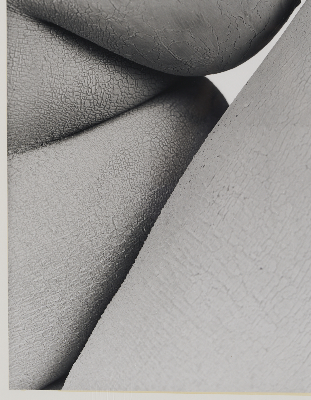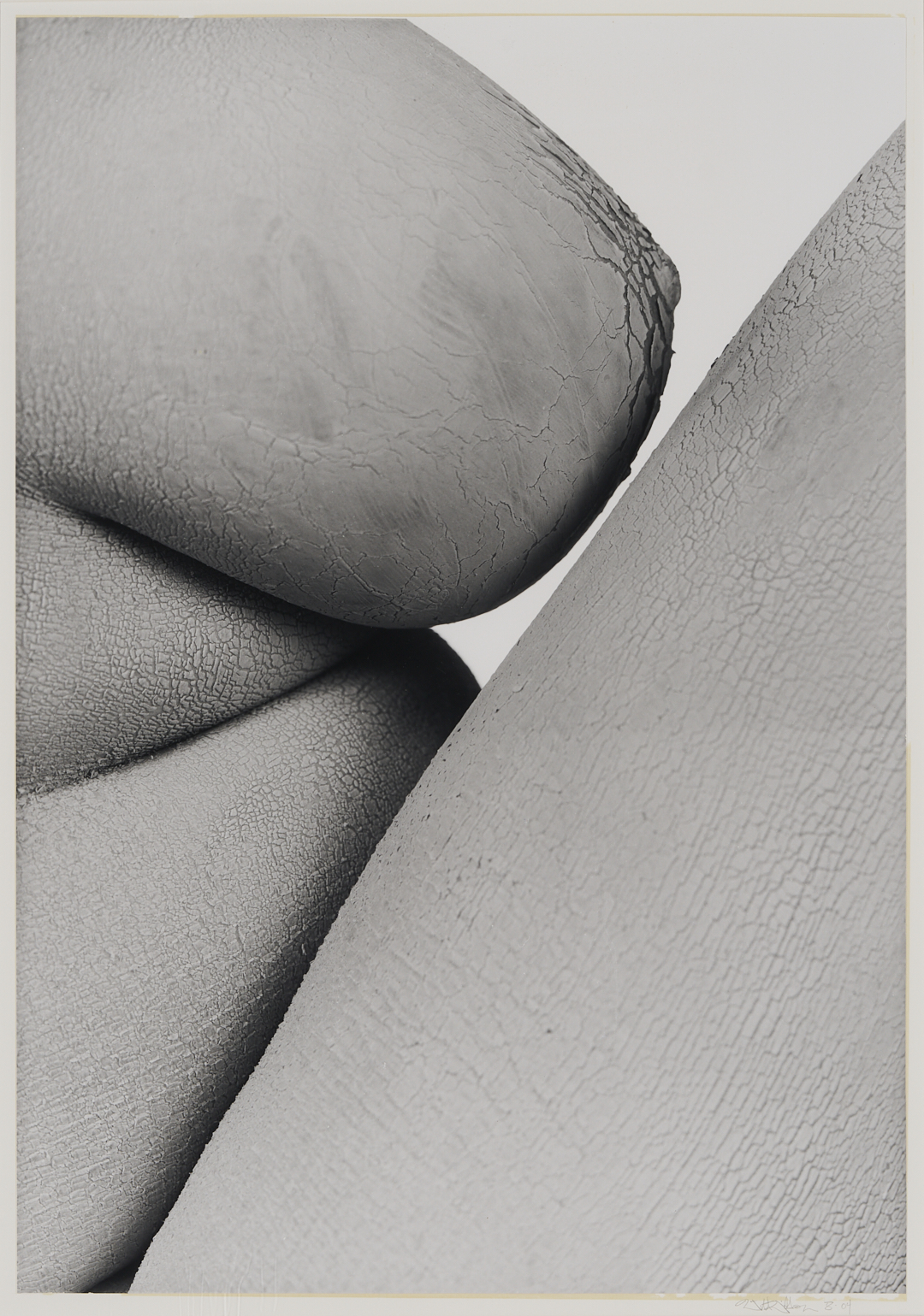 1st item: Stephen Coan (American, 20th/21st century) black and white silver gelatin photograph, “Rachel,” that depicts the blurred, nude torso of a female. Housed in a brown wood frame with a white mat. Sight: 18 in. H x 15 in. W. Framed: 33 in. H x 24 1/4 in. W. 2nd item: Will Wilson (Nashville, 20th/21st century) black and white selenium toned fiber print, “from to and where we are,” that depicts a woman’s breast, stomach, and thigh covered with crackled mud or a similar material, 2004. Signed and dated in pencil, lower right. Title card label from previous exhibition affixed to backing. Floated under glass in a metallic frame with white mat. Sheet: 28 1/2 in. H x 20 in. W. Framed: 32 1/2 in. H x 28 1/2 in. W.