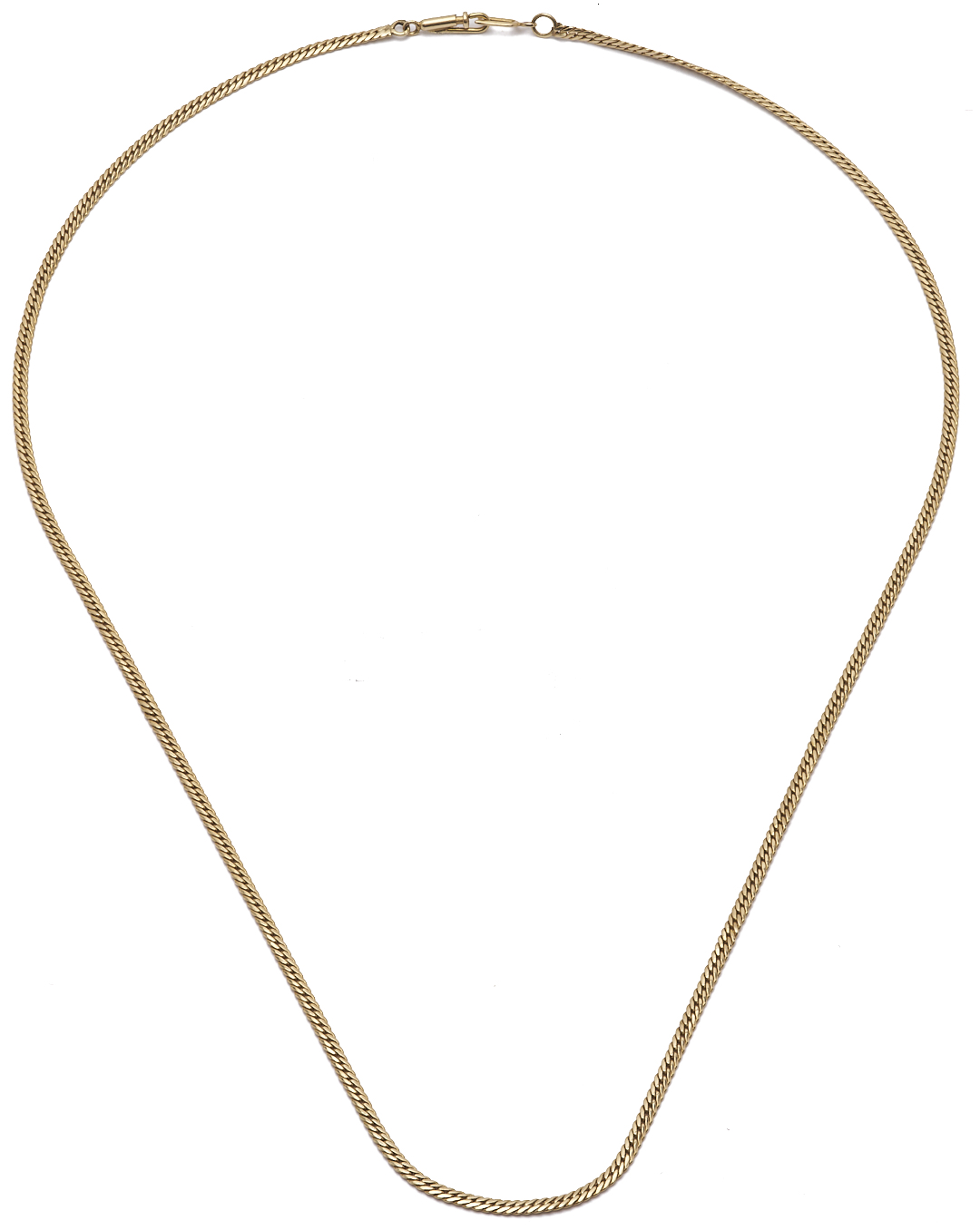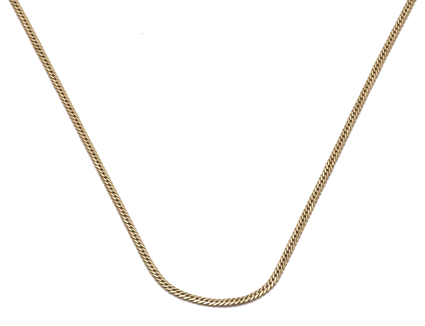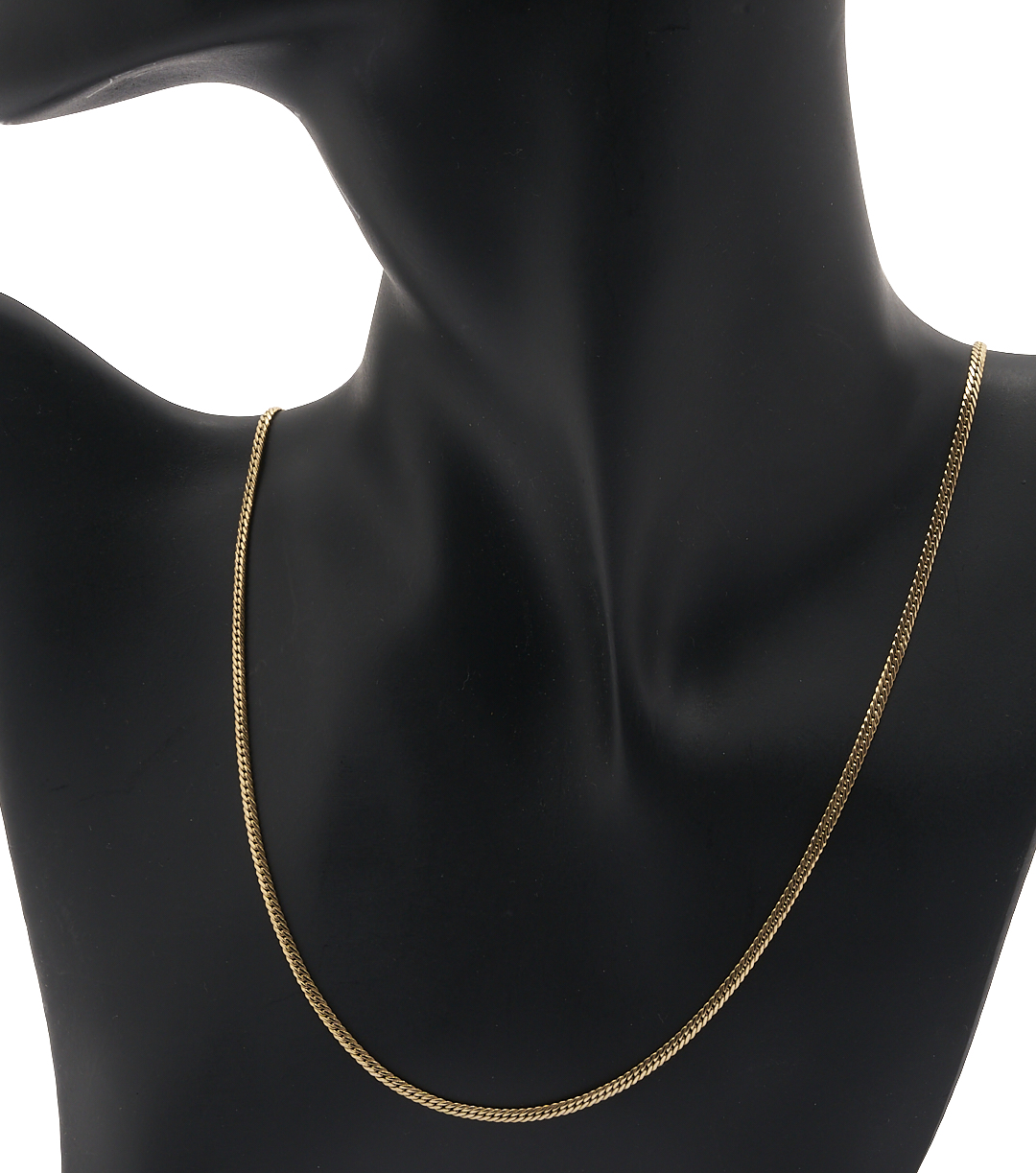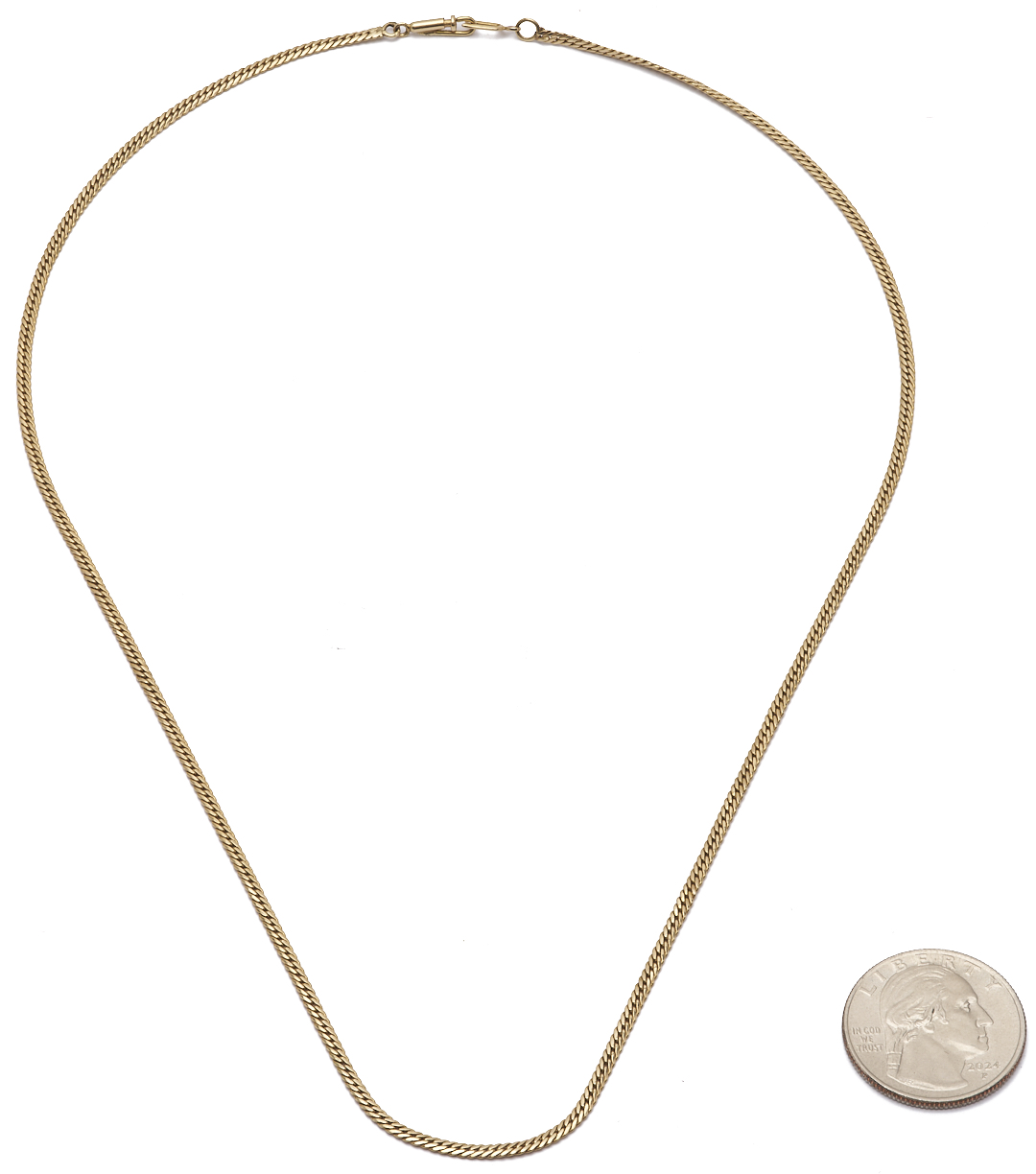 Ladies’ 14K yellow gold curb link chain necklace. The necklace XRF tests 14K gold. The necklace is 18″ L. and has a weight of 6.33 grams.